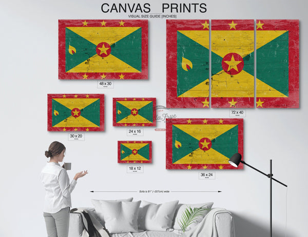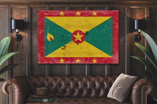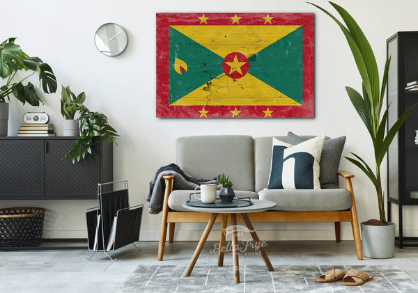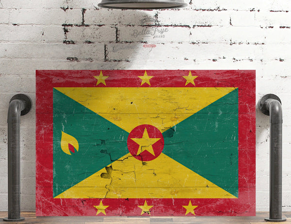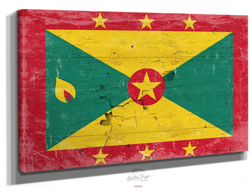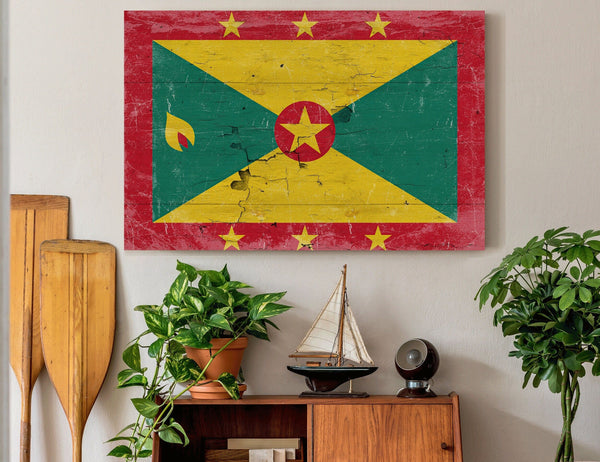 • Bella Frye Home & Garden > Decor > Artwork Grenada Flag Wall Art - Vintage Grenada Flag Sign Weathered Wood Style on Canvas