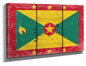 • Bella Frye Home & Garden > Decor > Artwork 60" x 40" / 3 Panel Canvas Wrap Grenada Flag Wall Art - Vintage Grenada Flag Sign Weathered Wood Style on Canvas