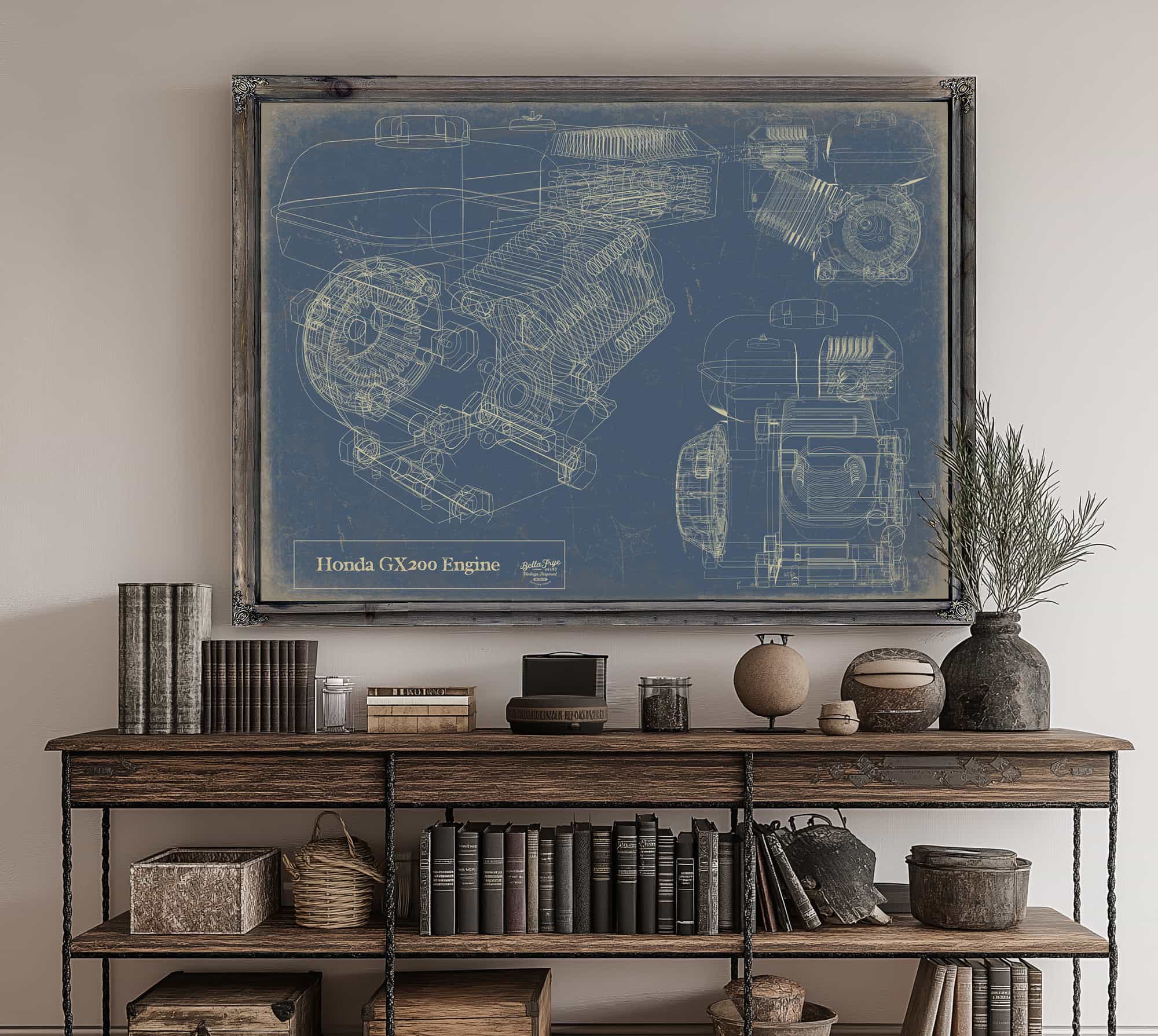 • Bella Frye Home & Garden > Decor > Artwork 24" x 18" / Grey Frame / Blue Honda gx200 Engine  Original Artwork