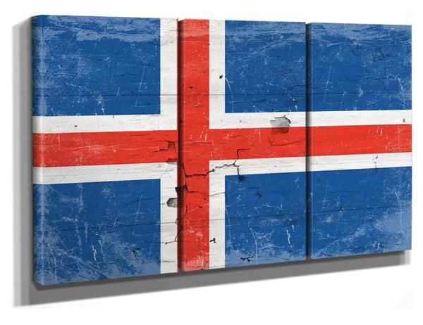 • Bella Frye Home & Garden > Decor > Artwork 60" x 40" / 3 Panel Canvas Wrap Iceland Flag Wall Art - Vintage Iceland Flag Sign Weathered Wood Style on Canvas
