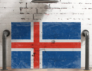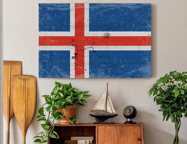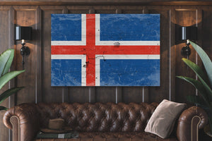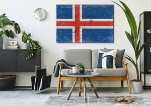 Iceland Flag Wall Art - Vintage Iceland Flag Sign Weathered Wood Style on Canvas