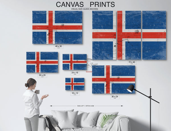 • Bella Frye Home & Garden > Decor > Artwork Iceland Flag Wall Art - Vintage Iceland Flag Sign Weathered Wood Style on Canvas