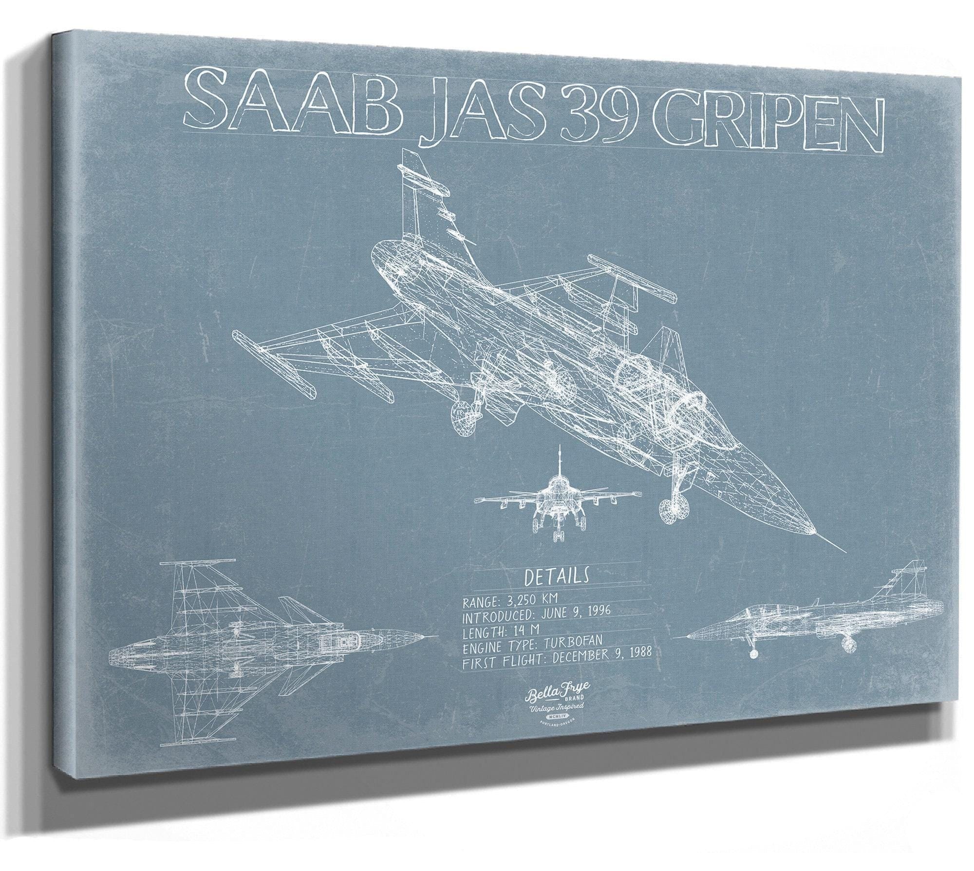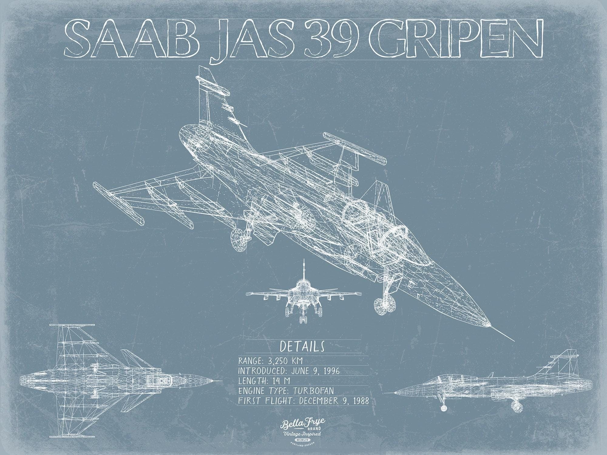 • Bella Frye Home & Garden > Decor > Artwork Saab JAS 39 Gripen Aircraft Blueprint Wall Art - Original Fighter Plane Print
