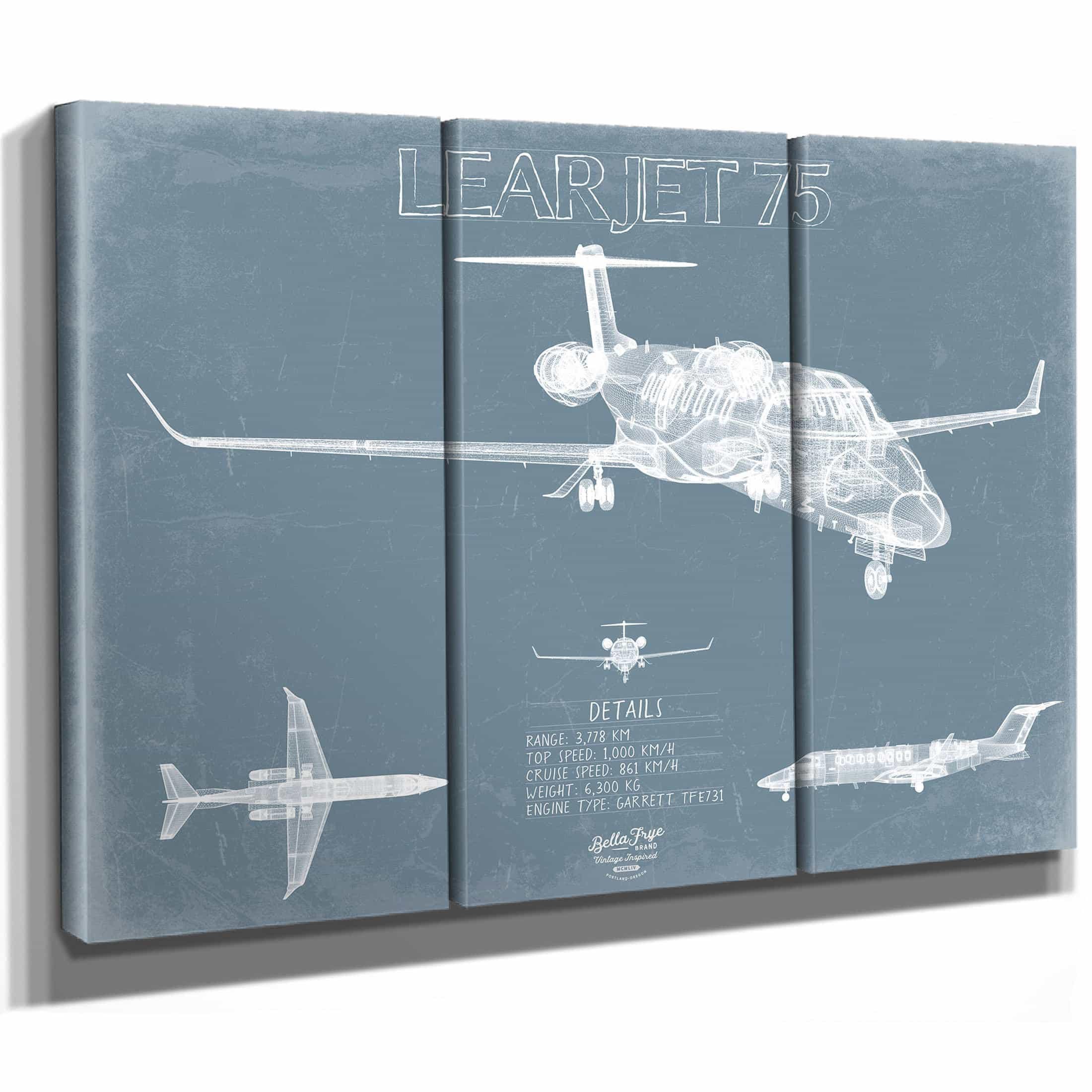• Bella Frye Home & Garden > Decor > Artwork Learjet 75 Aircraft Blueprint Wall Art - Original Airplane Print
