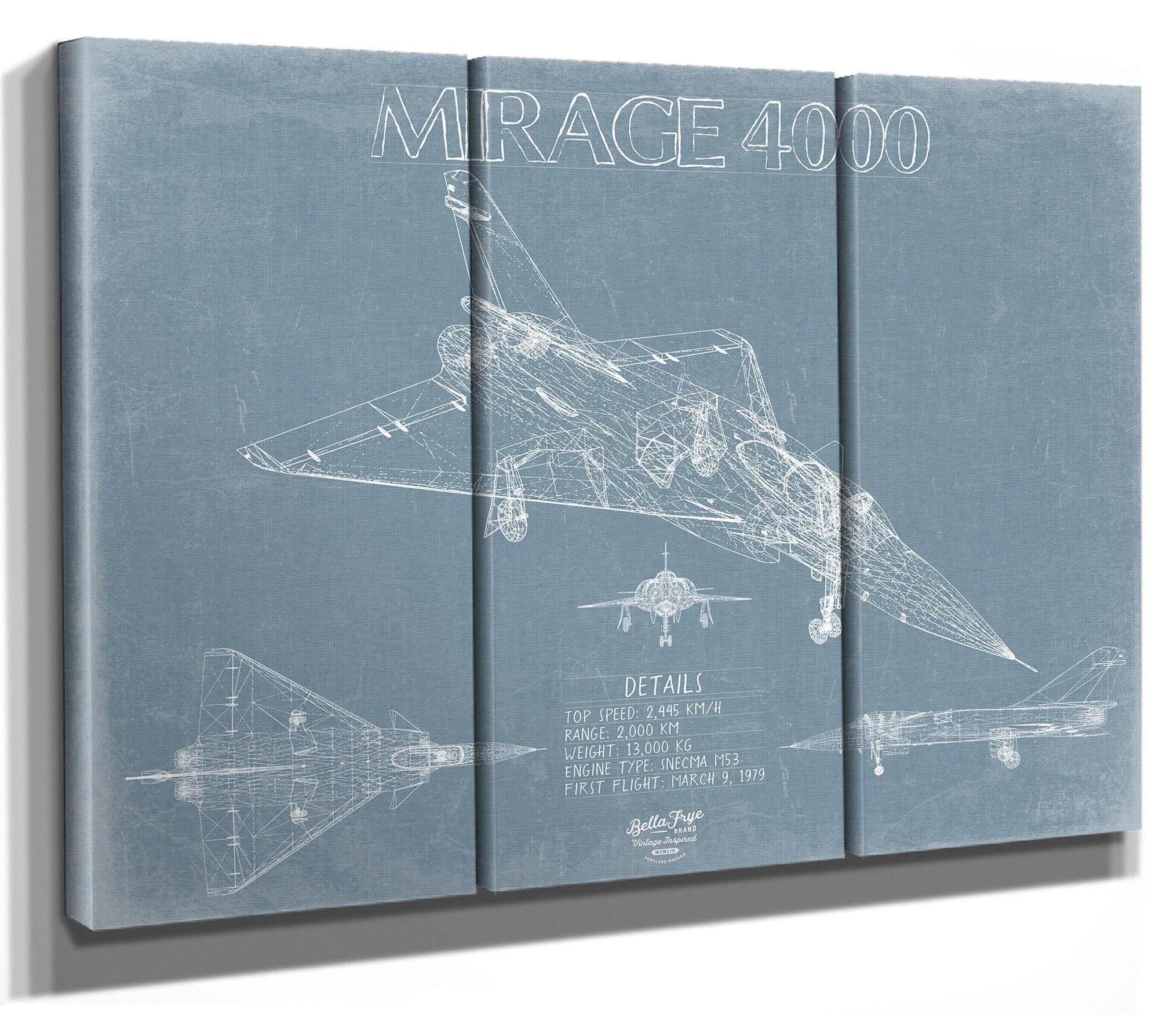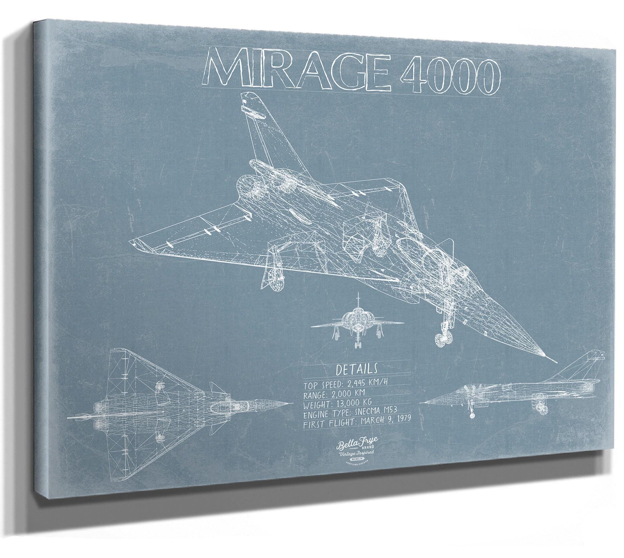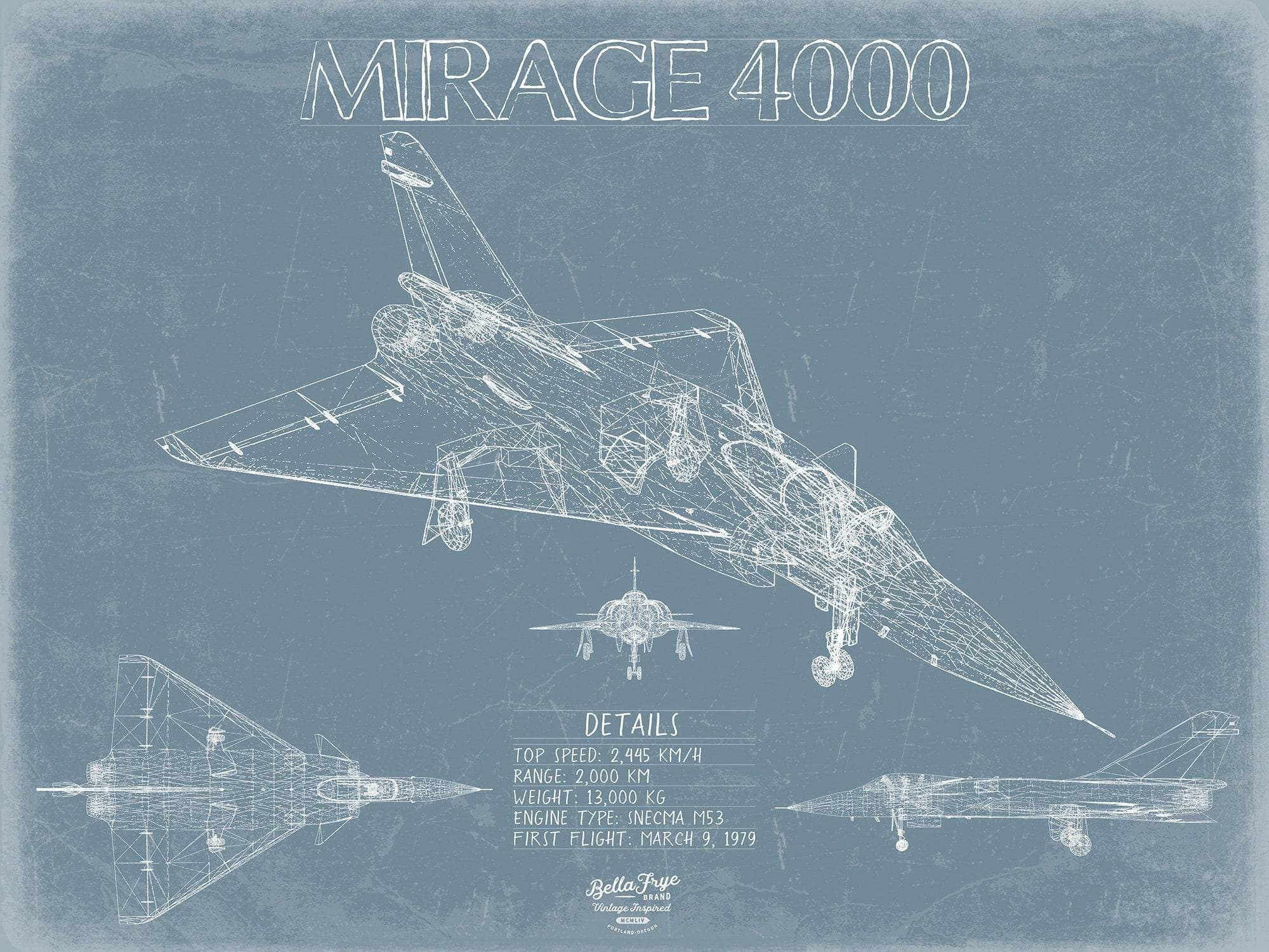 • Bella Frye Home & Garden > Decor > Artwork Dassault Mirage 4000 Aircraft Blueprint Wall Art - Original Fighter Plane Print
