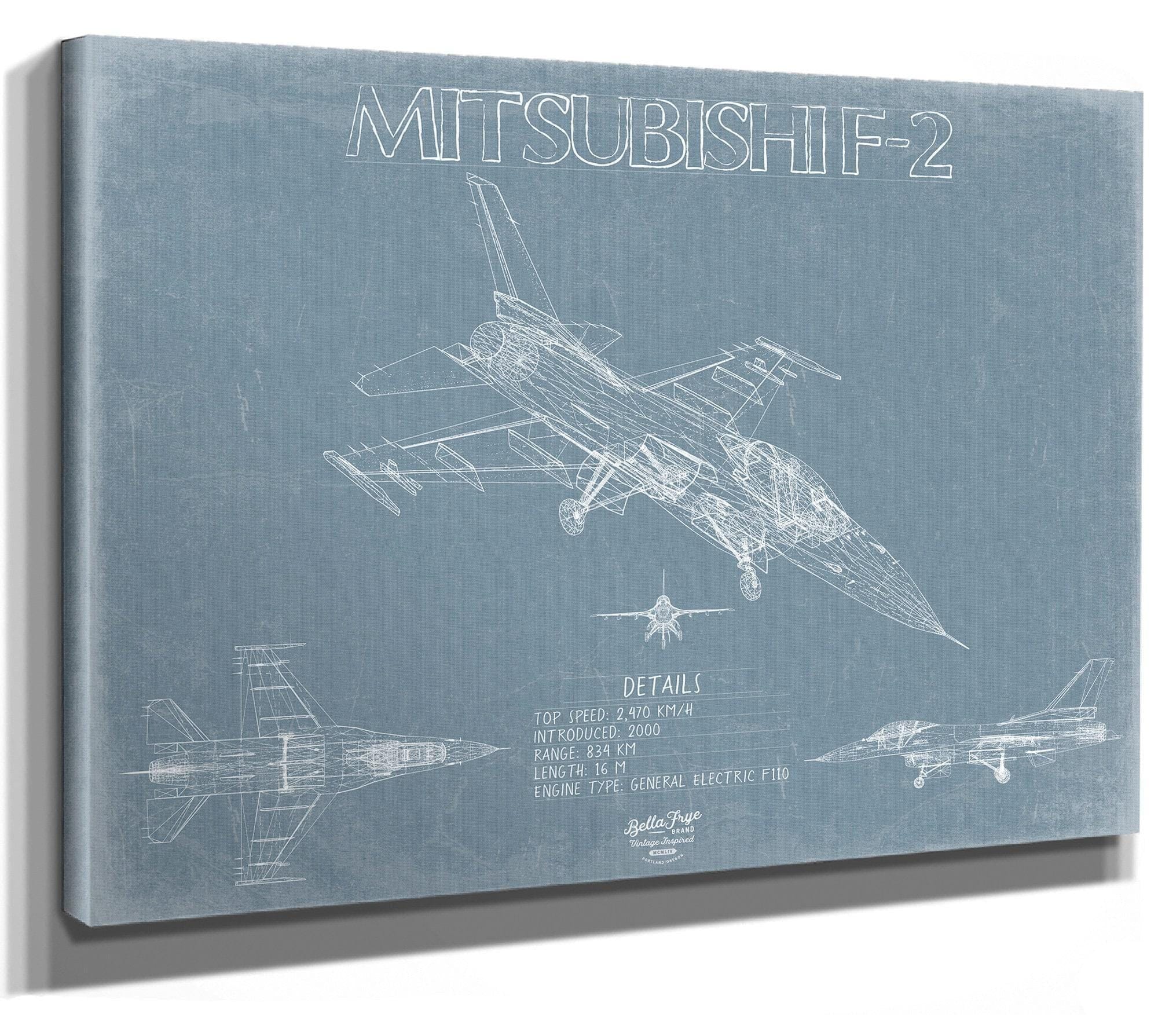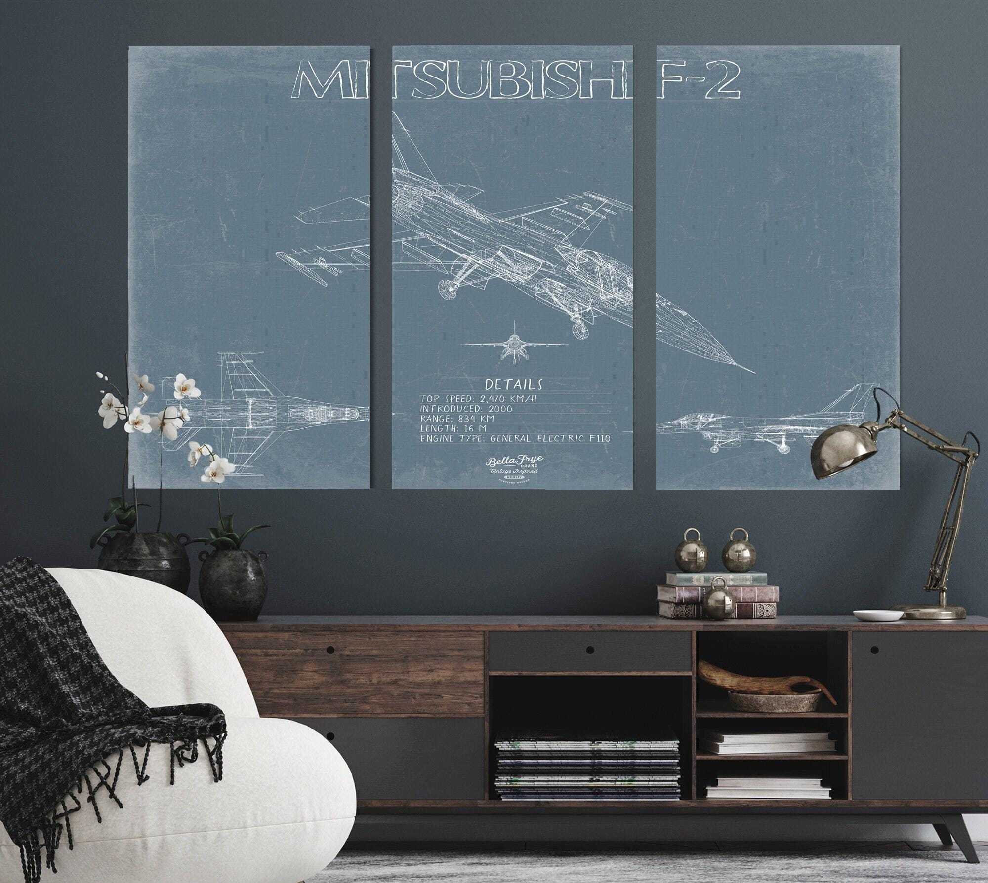 • Bella Frye Home & Garden > Decor > Artwork F-2 Aircraft Blueprint Wall Art - Original Fighter Plane Print