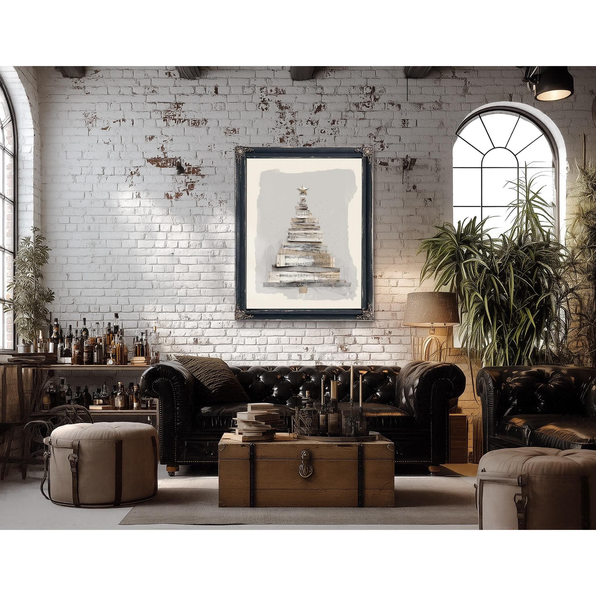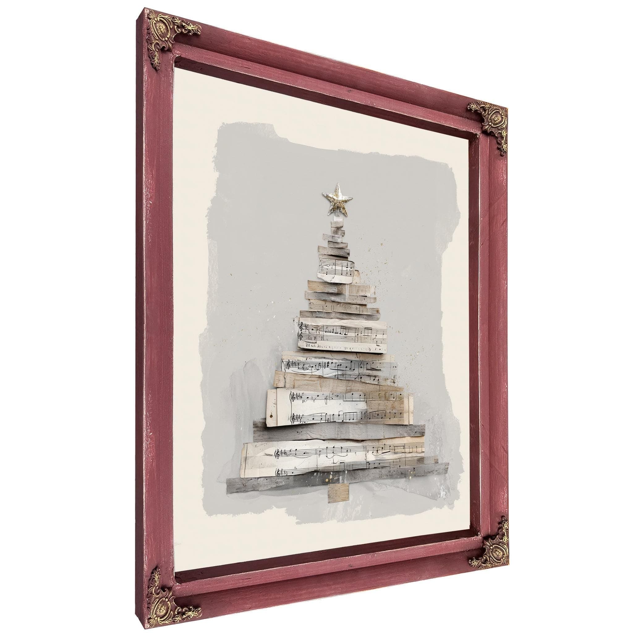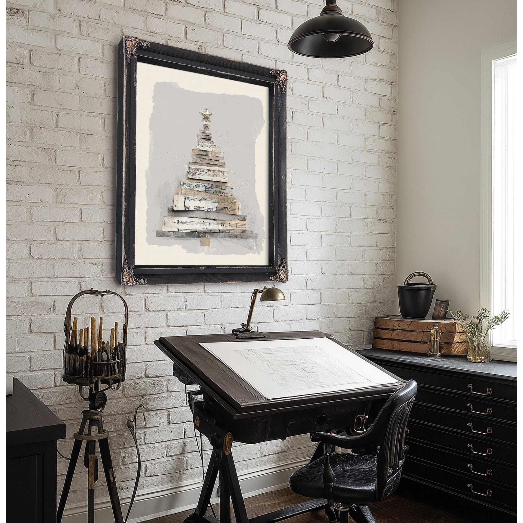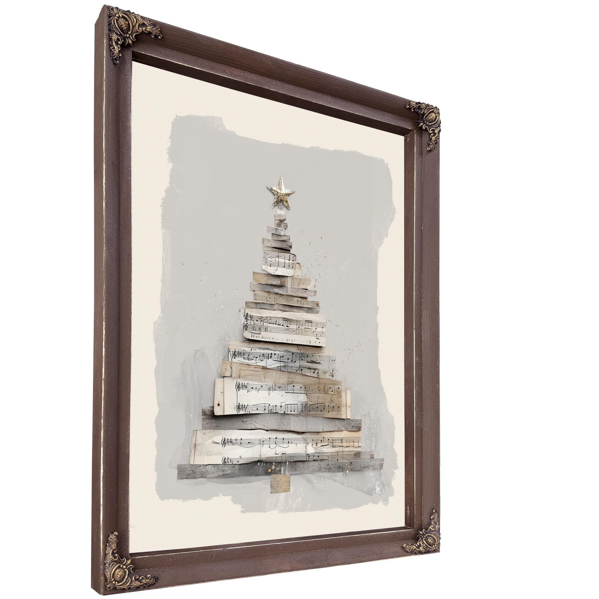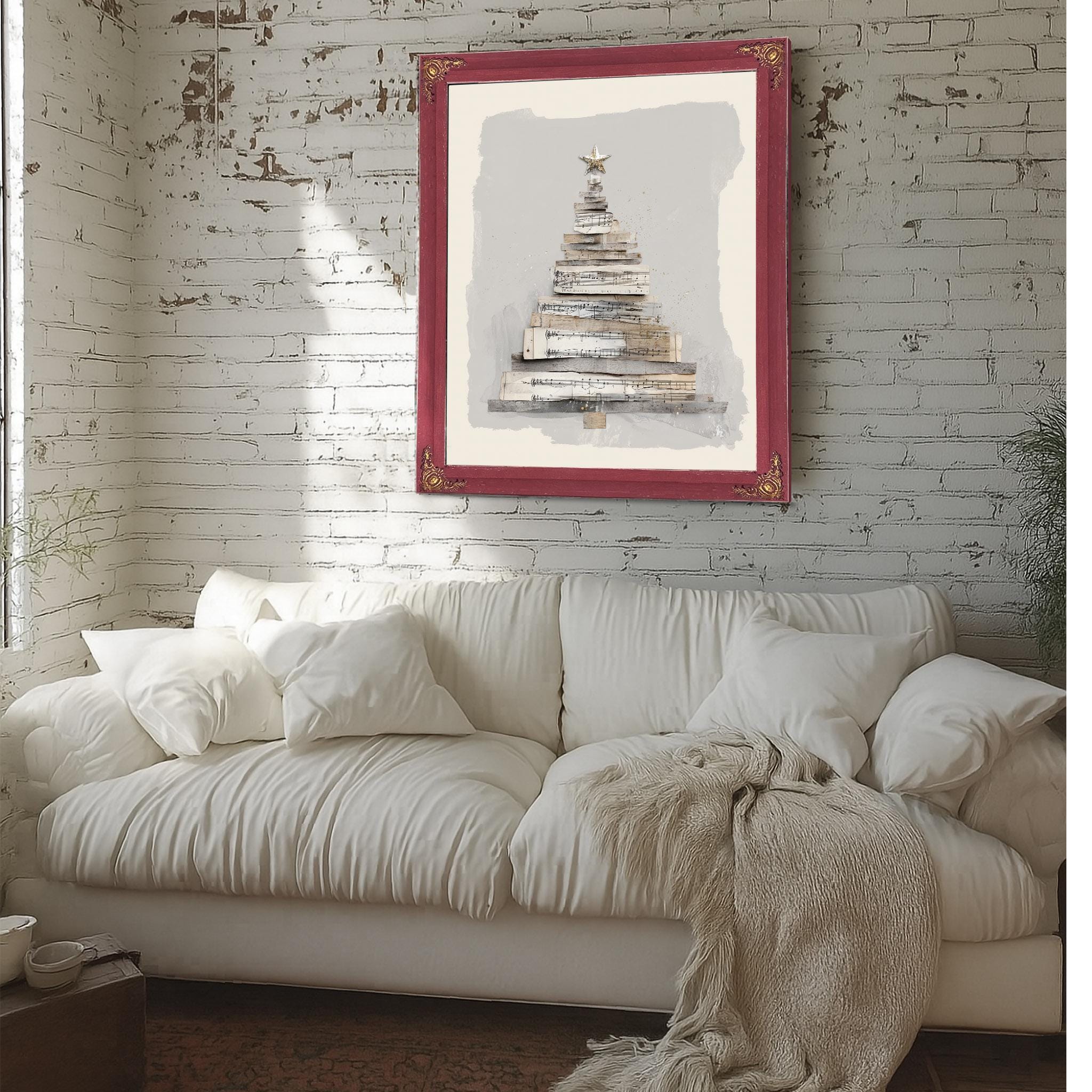 • Bella Frye Neutral Sheet Music Christmas Tree – Minimalist Holiday Wall Art – Stretched Canvas or Ornate Frame, Rustic Modern Christmas Décor