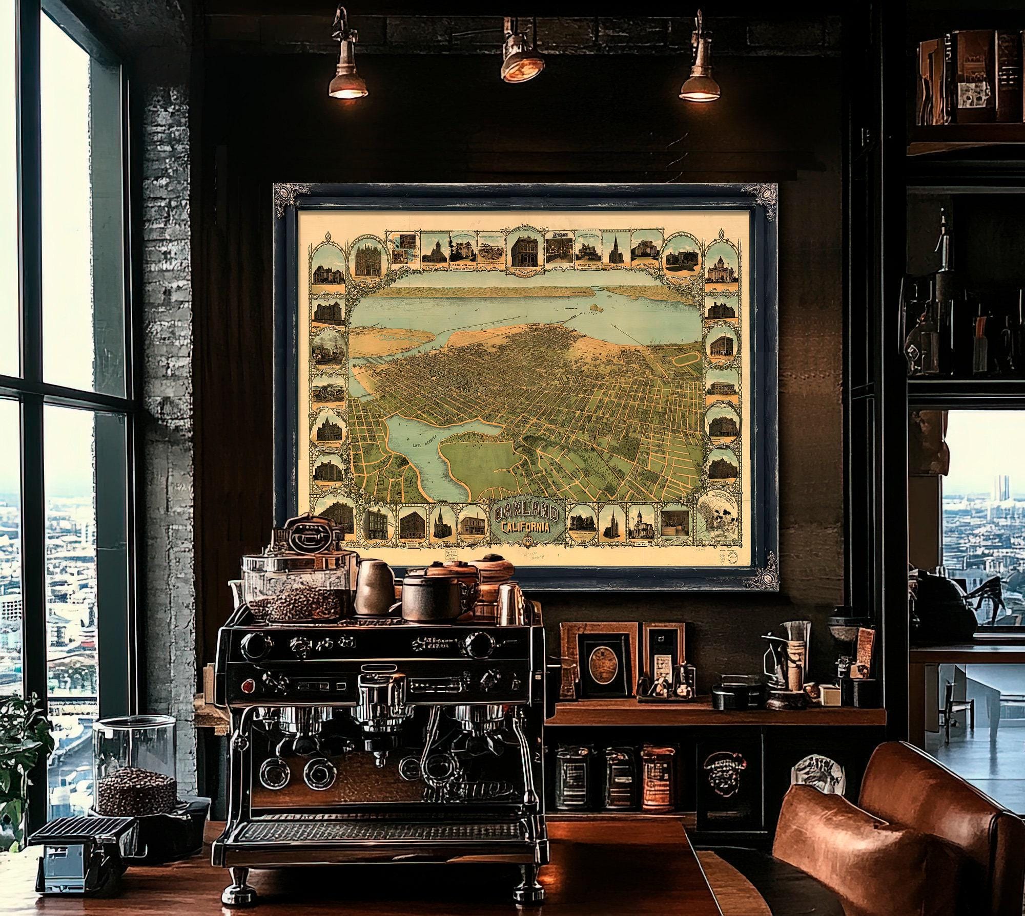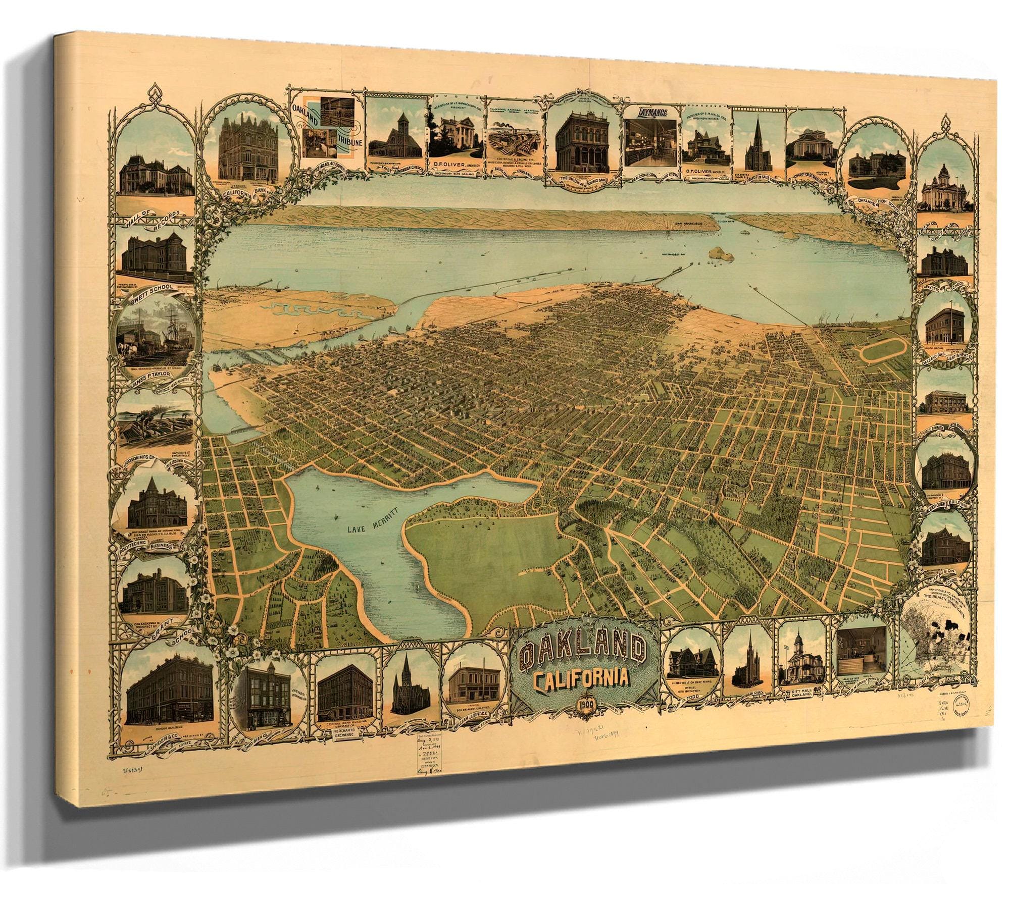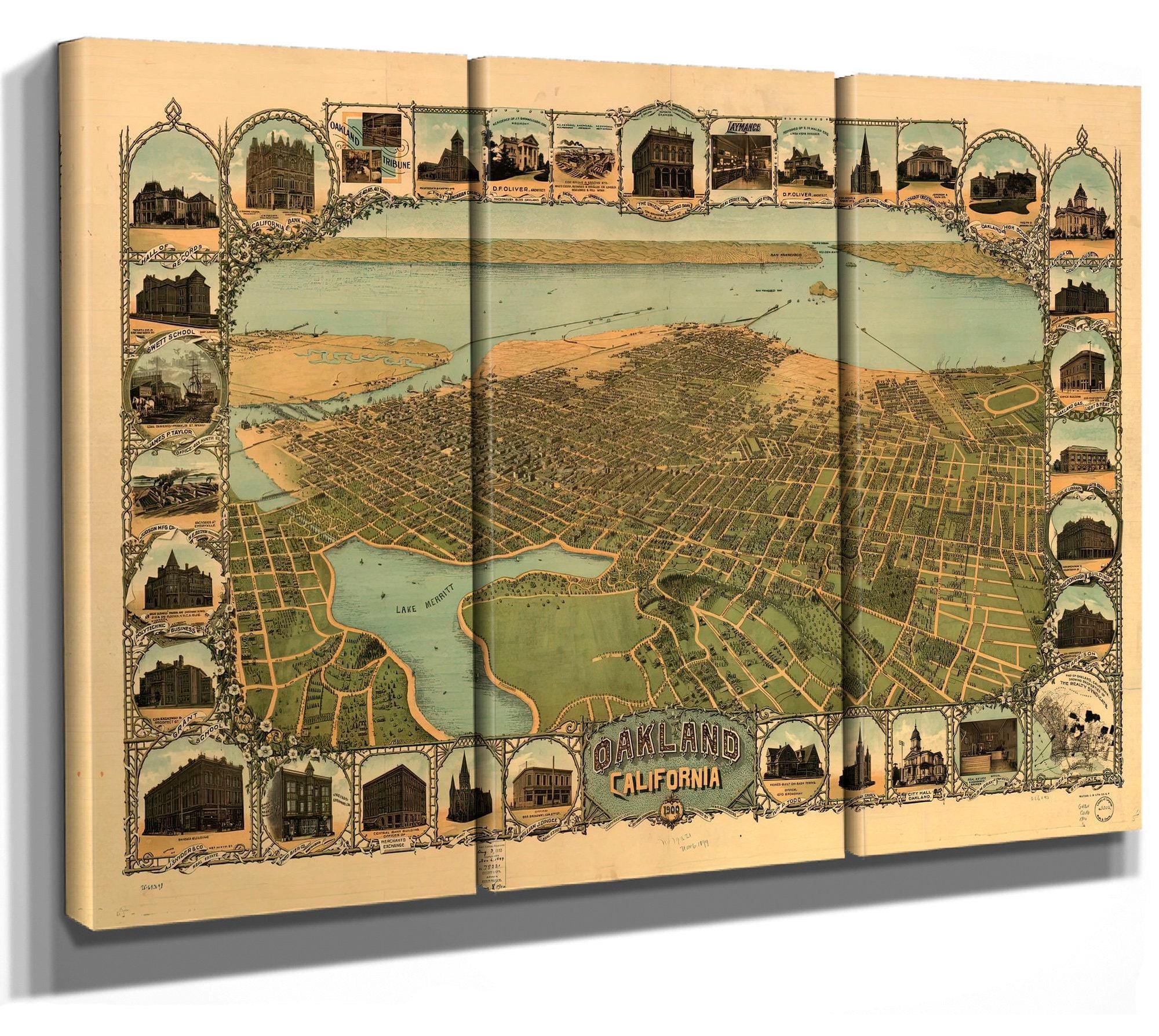 Oakland California Vintage Map Wall Art - Bird's Eye View City Canvas Art