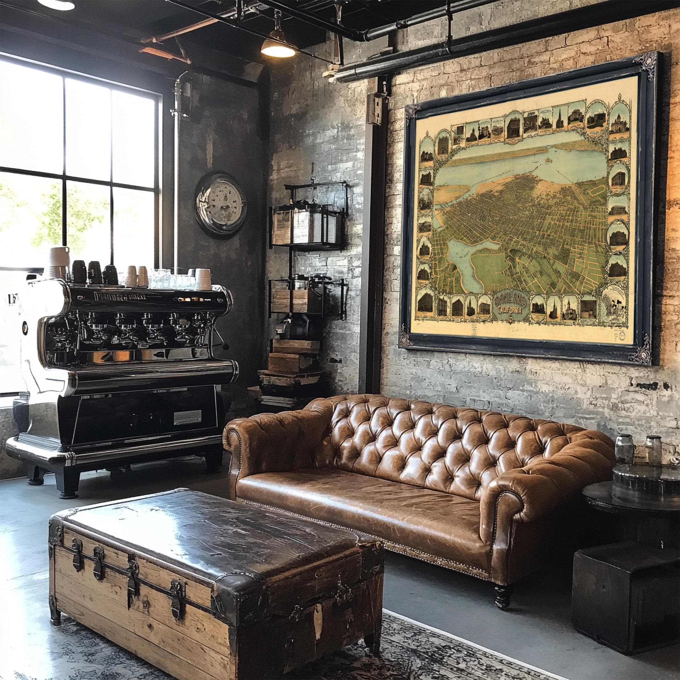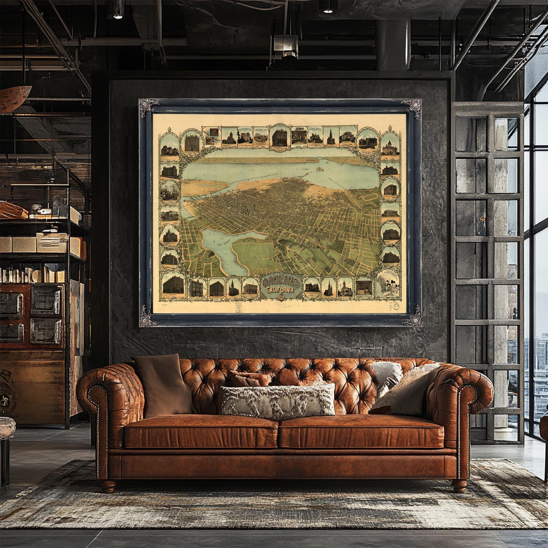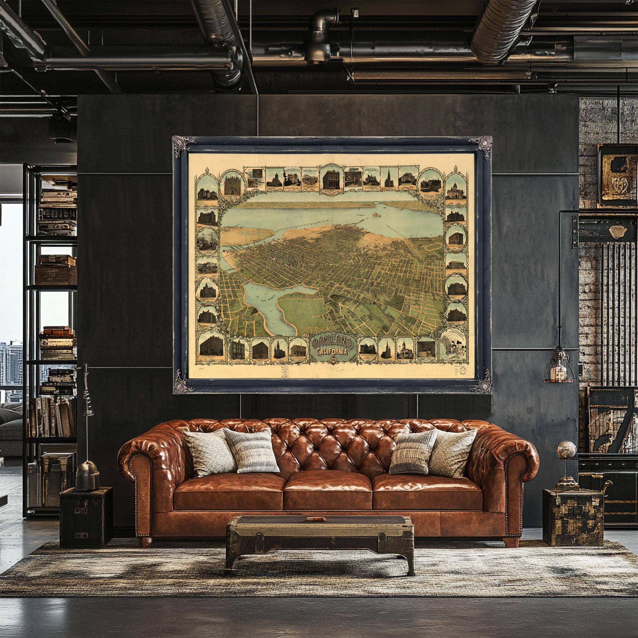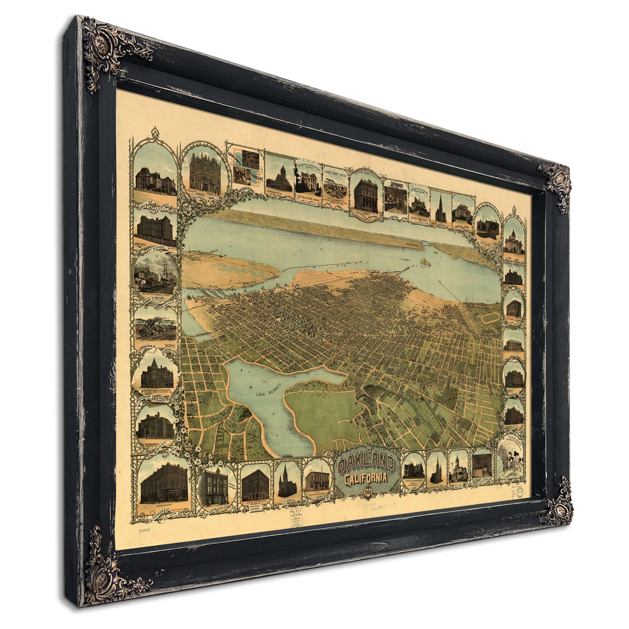• Bella Frye Home & Garden > Decor > Artwork Oakland California Vintage Map Wall Art - Bird's Eye View City Canvas Art
