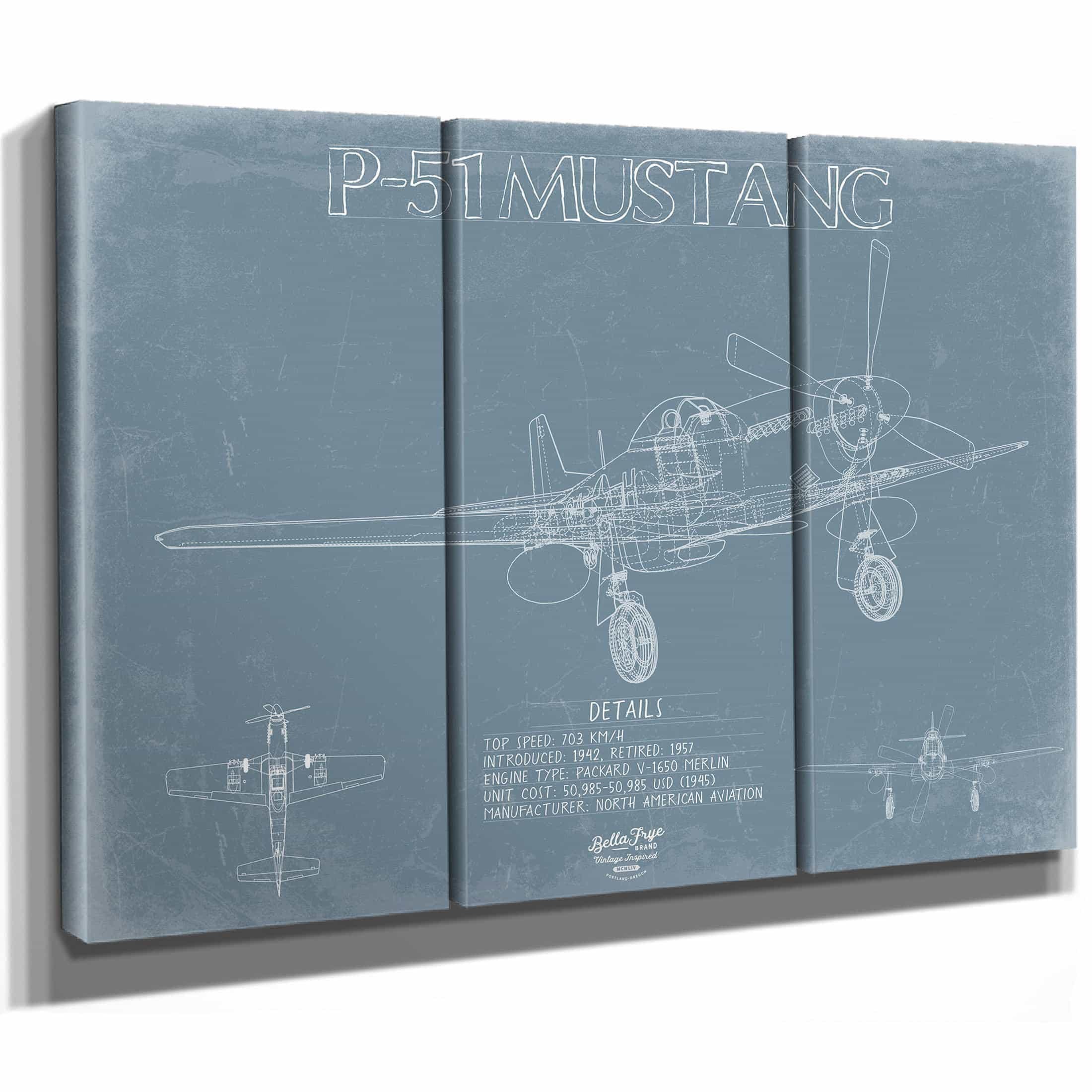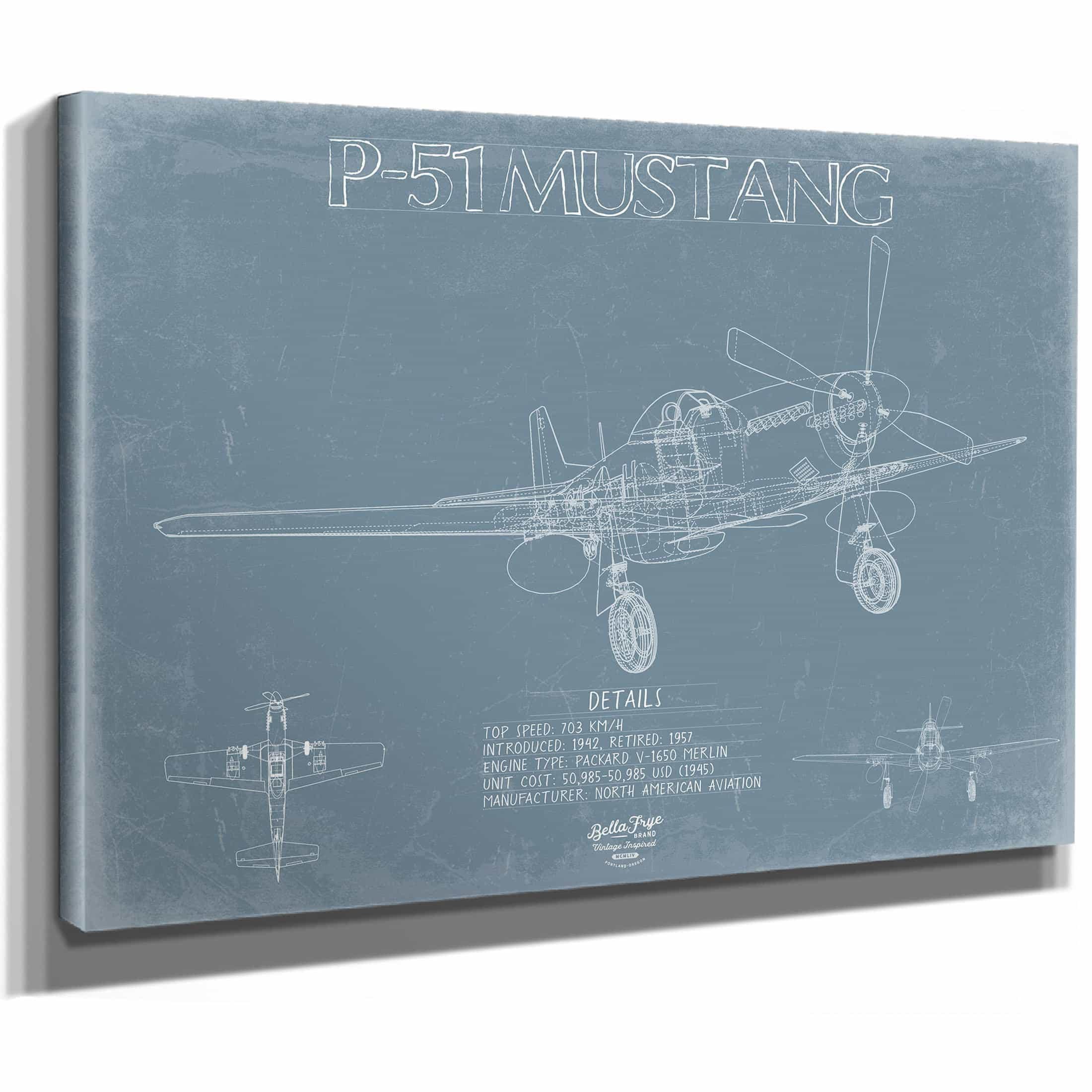 • Bella Frye Home & Garden > Decor > Artwork North American P-51 Mustang Aircraft Blueprint Wall Art - Original Fighter Plane Print