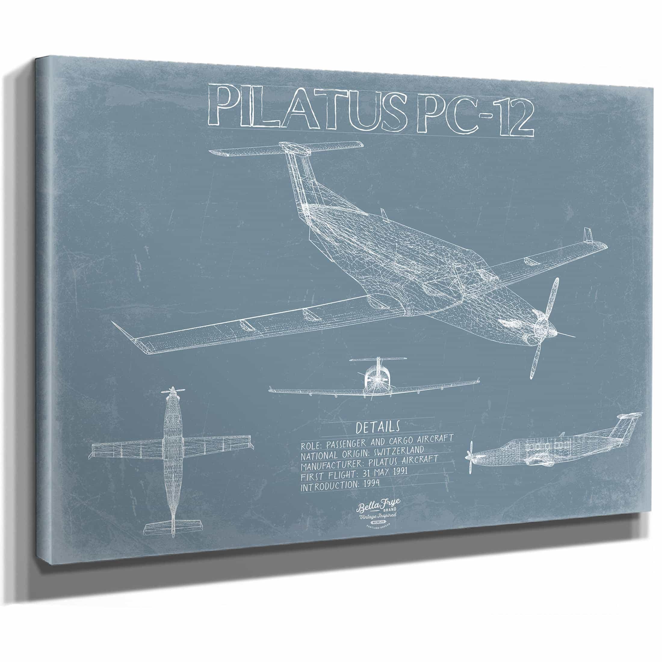 • Bella Frye Home & Garden > Decor > Artwork Pilatus PC-12 Aircraft Blueprint Wall Art - Original Aviation Plane Print