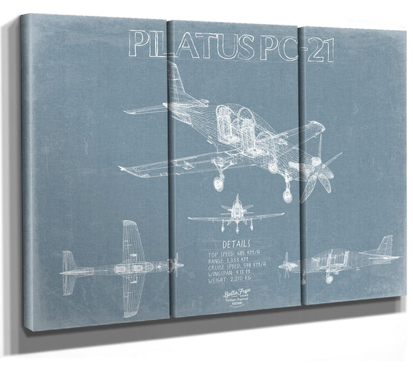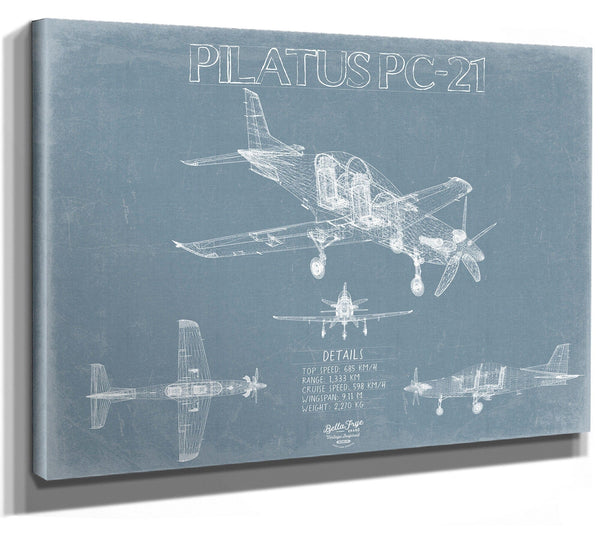 • Bella Frye Home & Garden > Decor > Artwork 24" x 18" / Stretched Canvas Wrap Pilatus PC-21 Aircraft Blueprint Wall Art - Original Aviation Plane Print
