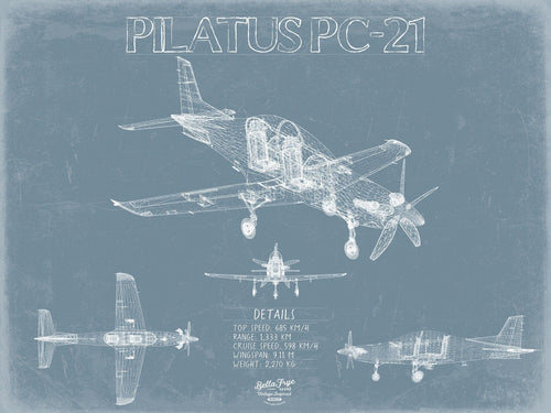 • Bella Frye Home & Garden > Decor > Artwork Pilatus PC-21 Aircraft Blueprint Wall Art - Original Aviation Plane Print