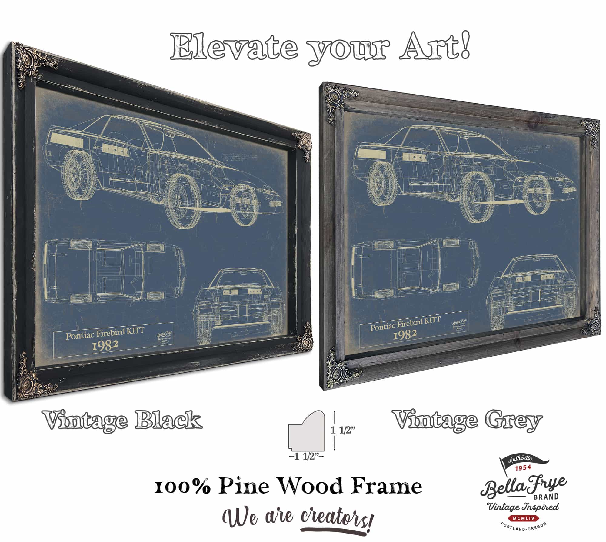 • Bella Frye Home & Garden > Decor > Artwork 24" x 18" / Grey Frame / Blue Pontiac Firebird Kitt 1982  Original Artwork