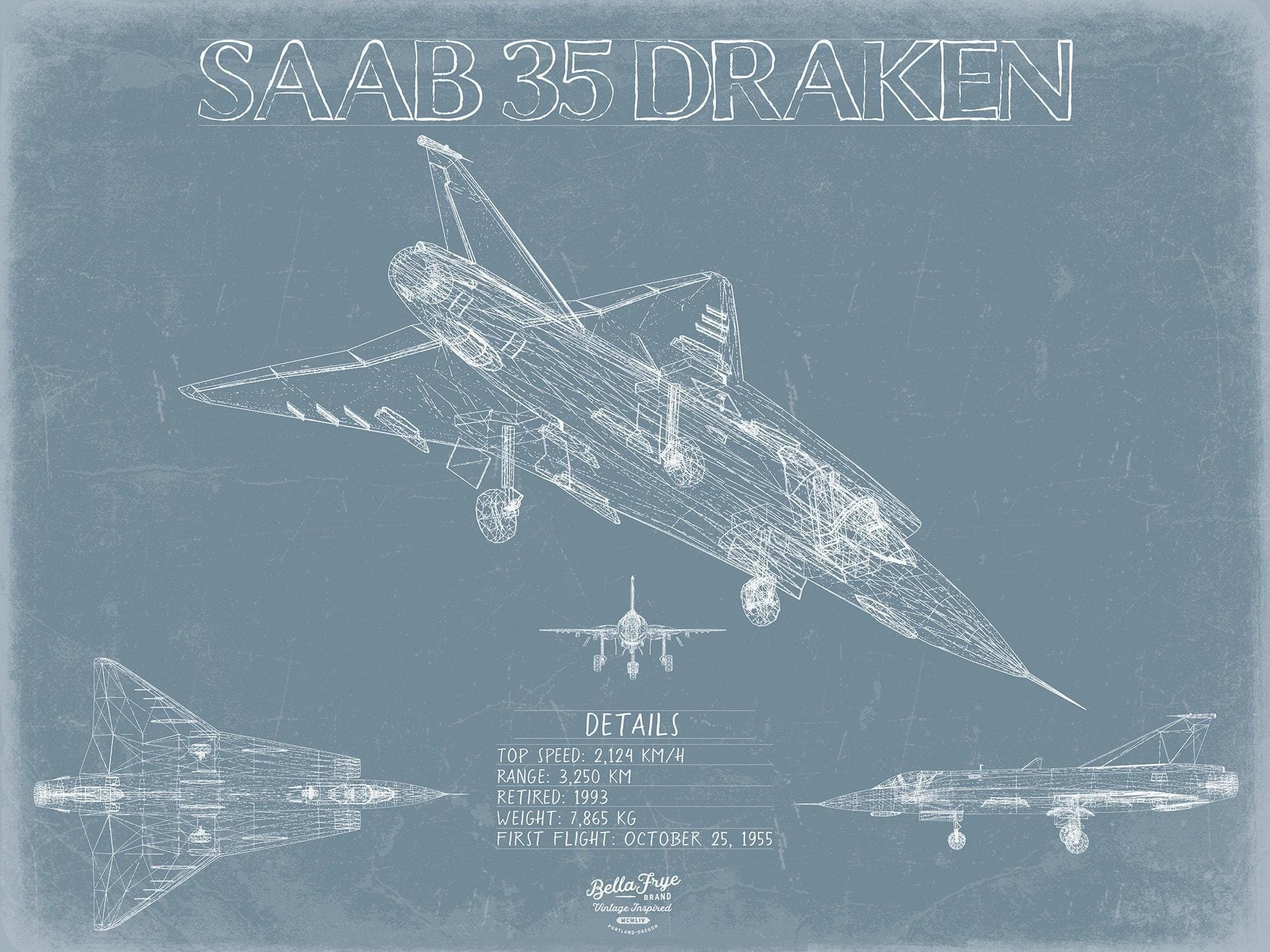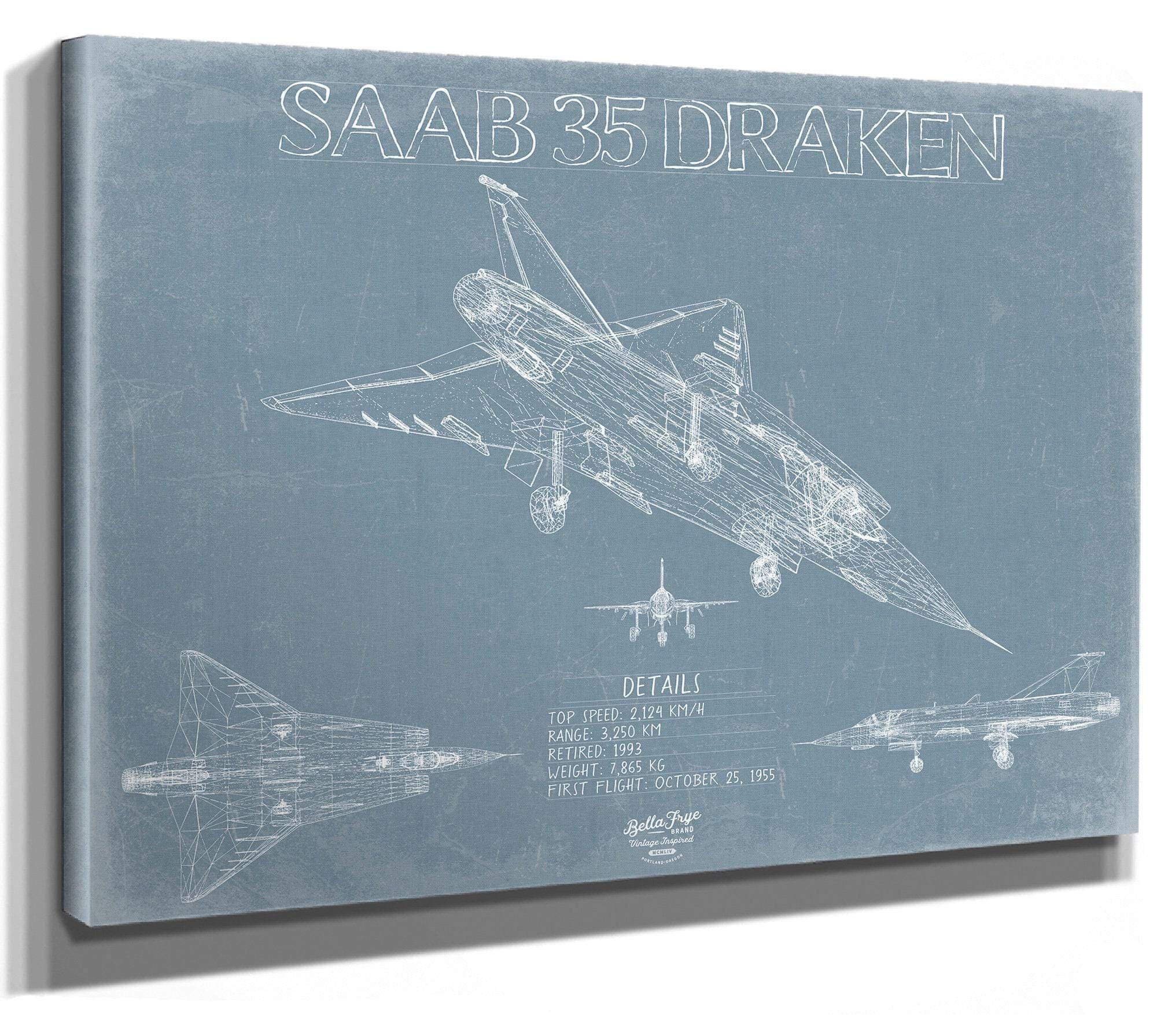 • Bella Frye Home & Garden > Decor > Artwork Saab 35 Draken Aircraft Blueprint Wall Art - Original Fighter Plane Print