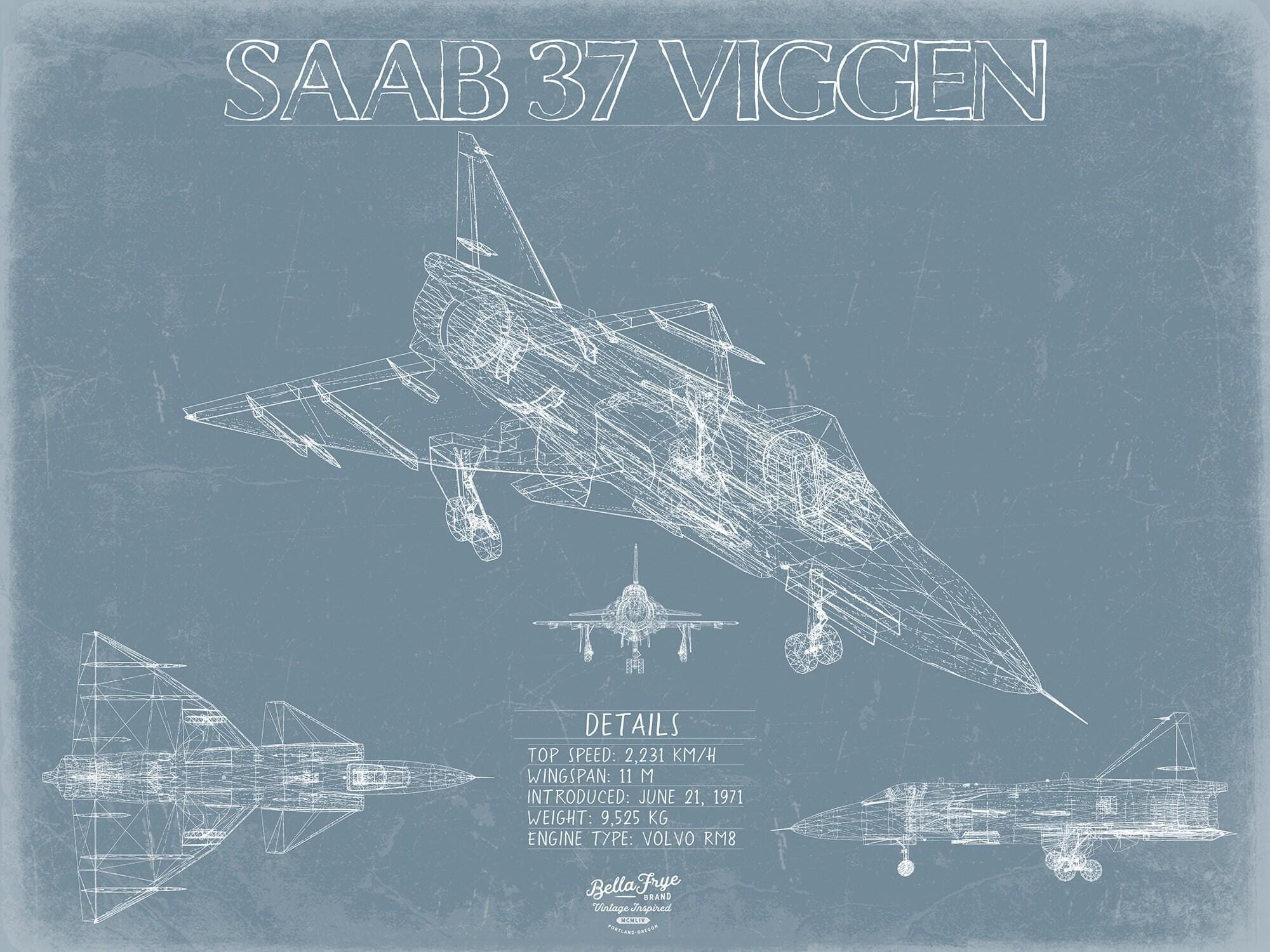 • Bella Frye Home & Garden > Decor > Artwork Saab 37 Viggen Aircraft Blueprint Wall Art - Original Fighter Plane Print