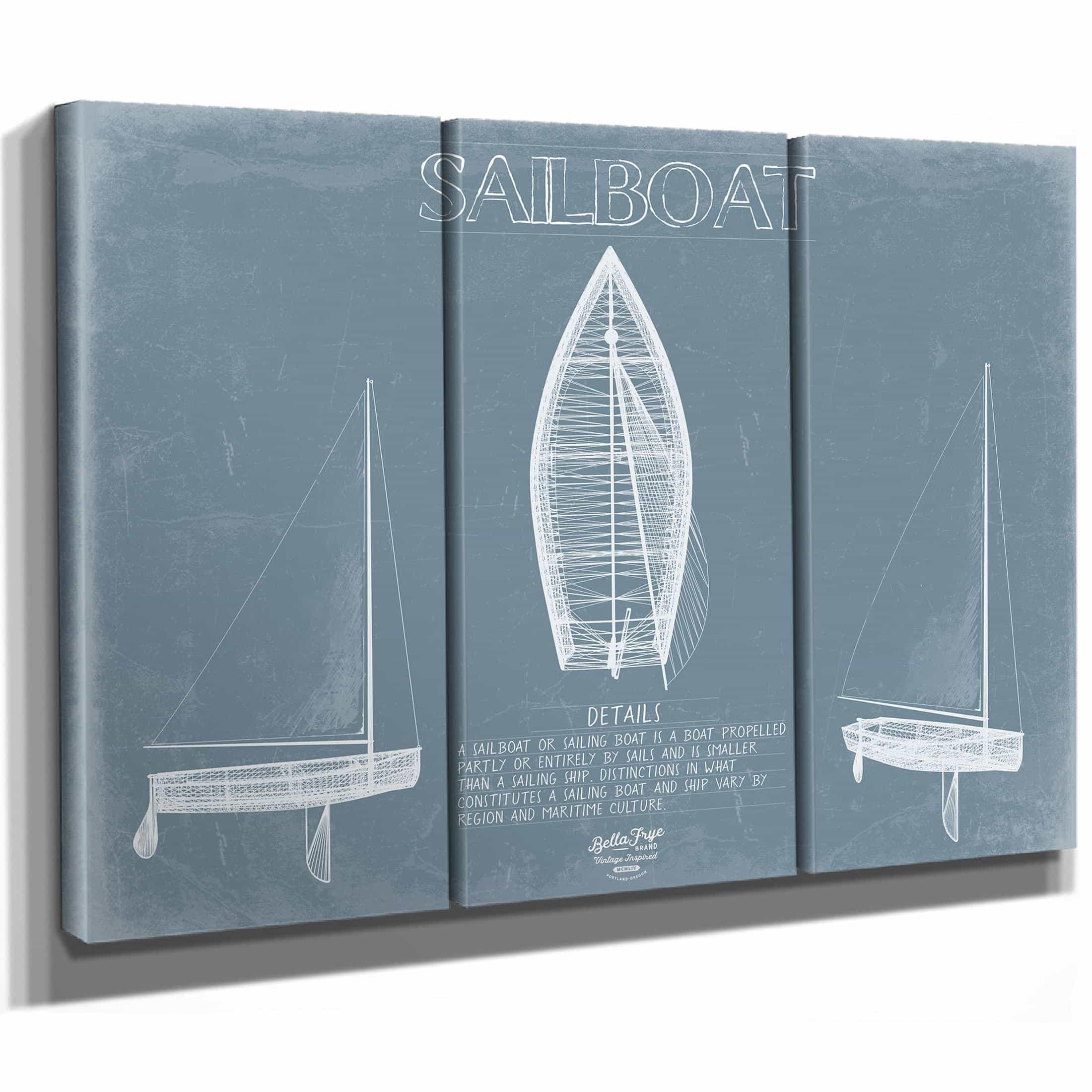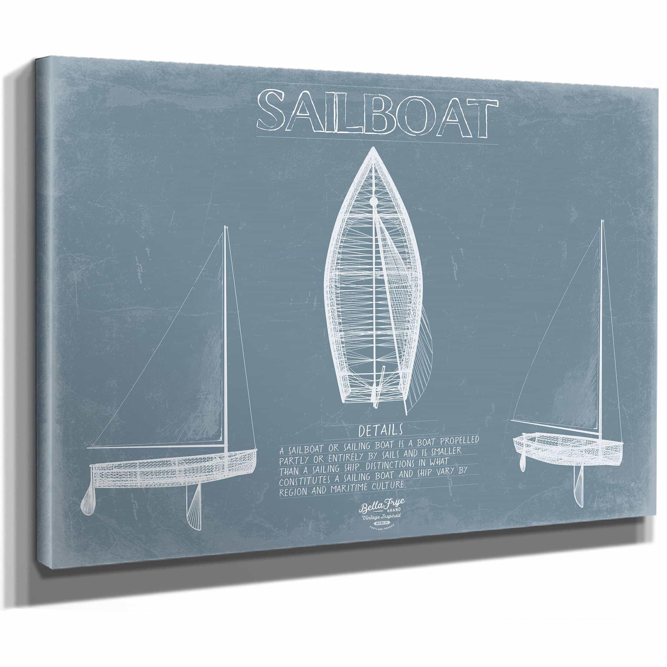 • Bella Frye Home & Garden > Decor > Artwork Sailboat Blueprint Wall Art - Original Sailing Maritime Print