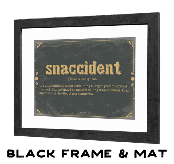 • Bella Frye Home & Garden > Decor > Artwork 24" x 18" / Black Frame Snaccident Word Definition Wall Art - Gift for Snaccident Dictionary Artwork