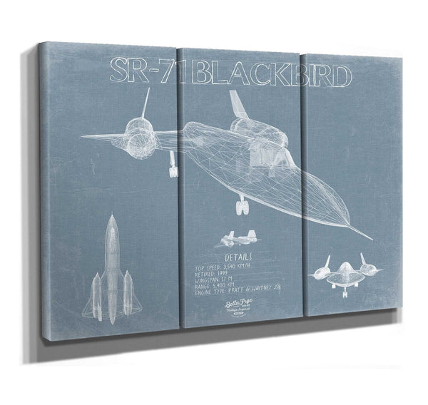 • Bella Frye Home & Garden > Decor > Artwork 60" x 40" / 3 Panel Canvas Wrap Lockheed SR-71 Blackbird Aircraft Blueprint Wall Art - Original Military Plane Print