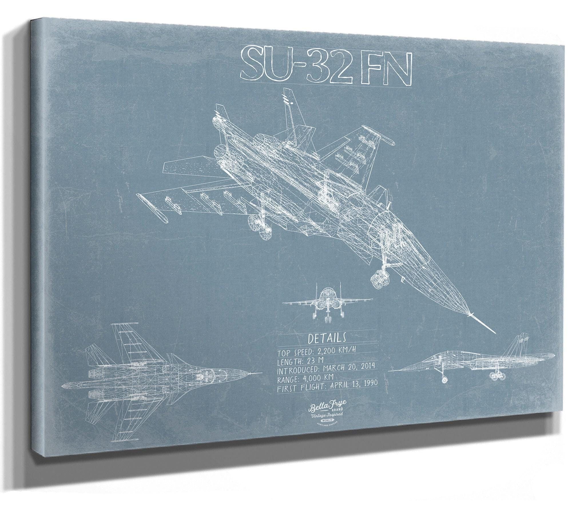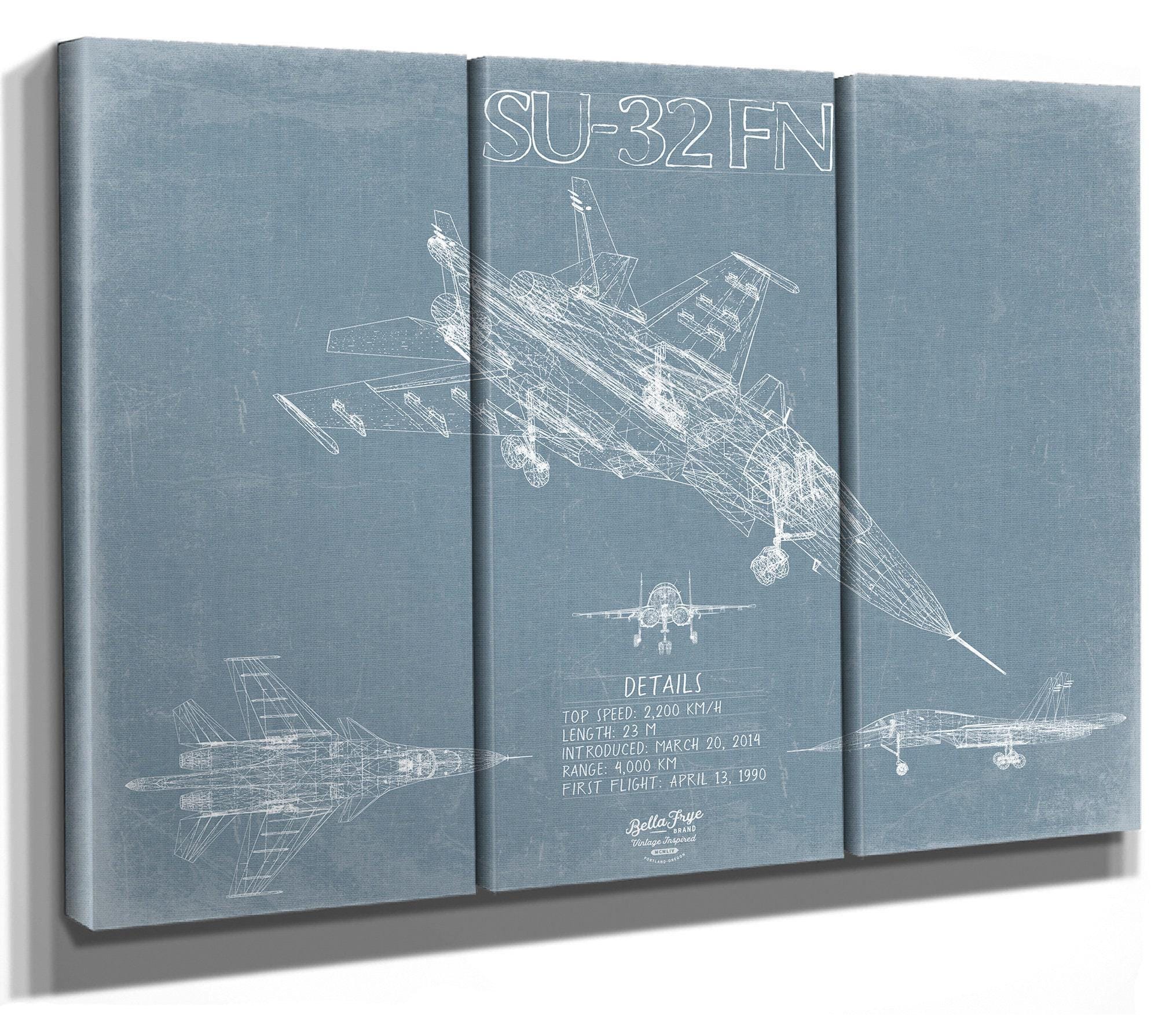 • Bella Frye Home & Garden > Decor > Artwork Sukhoi Su-34 / Su-32FN Aircraft Blueprint Wall Art - Original Fighter Plane Print
