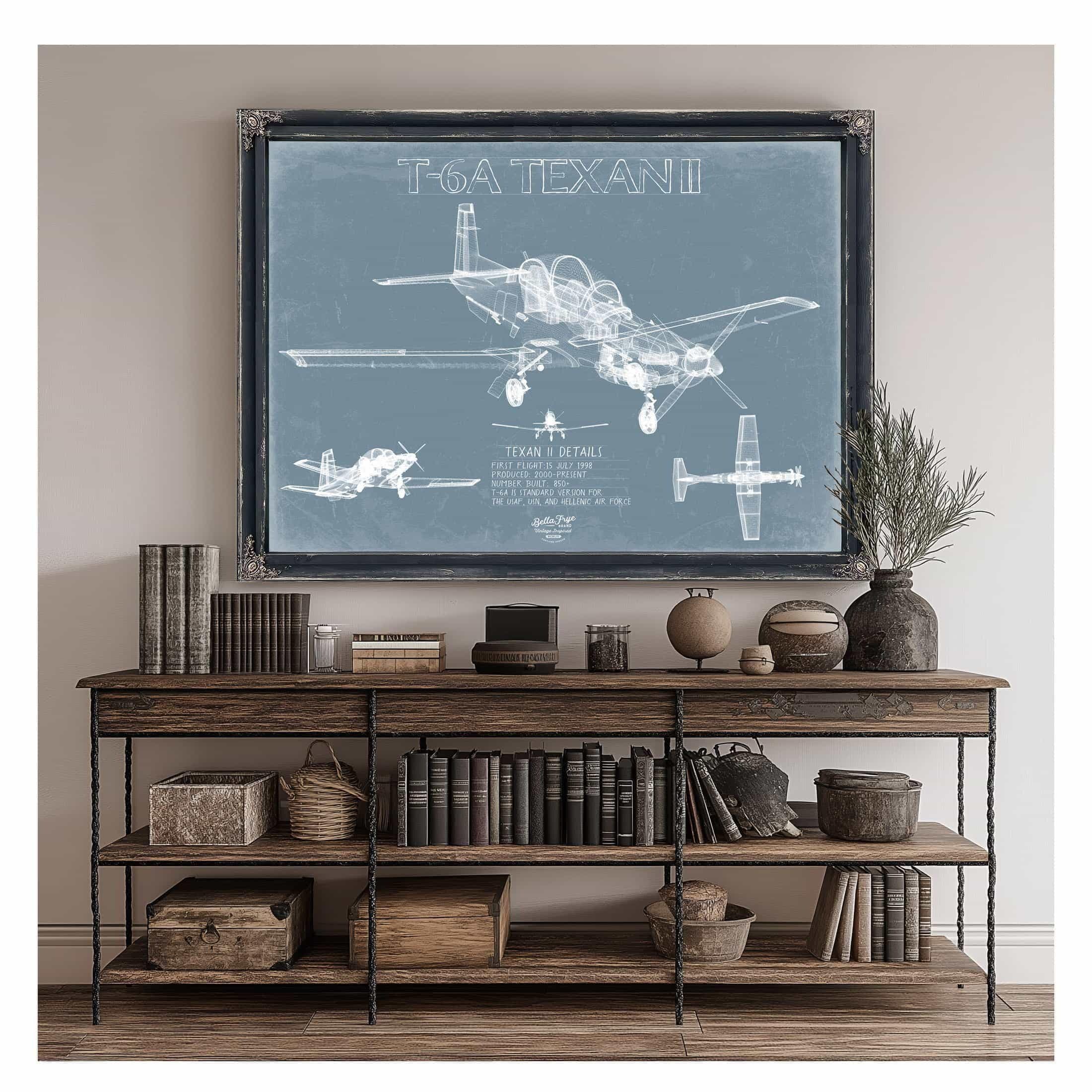 • Bella Frye Home & Garden > Decor > Artwork T-6A Texan II Blueprint Wall Art - Original Airplane Print