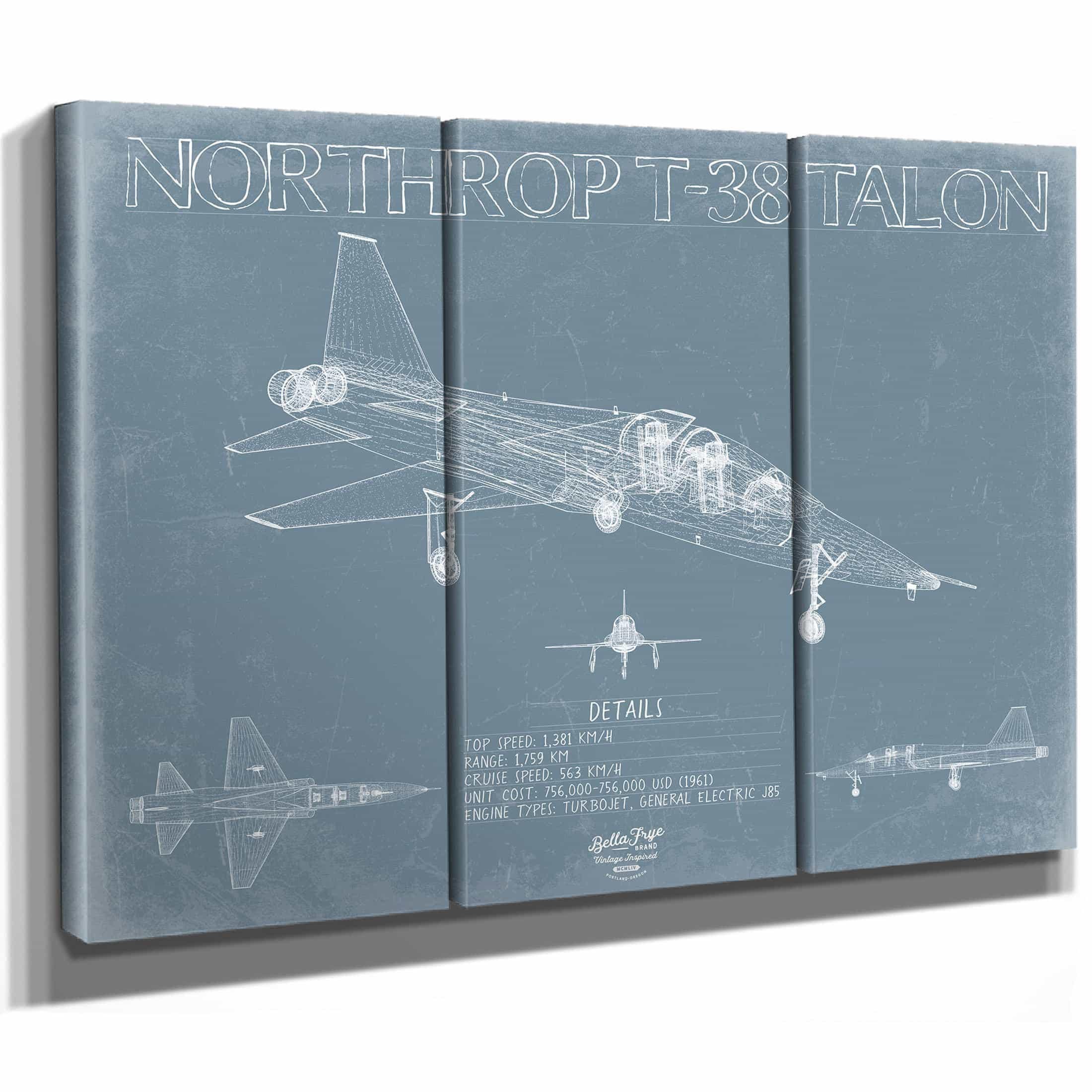• Bella Frye Home & Garden > Decor > Artwork Northrop Grumman T-38 Talon Aircraft Blueprint Wall Art - Original Fighter Plane Print