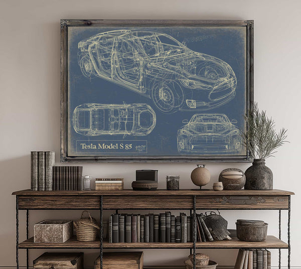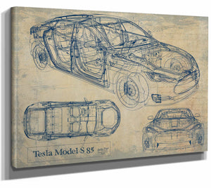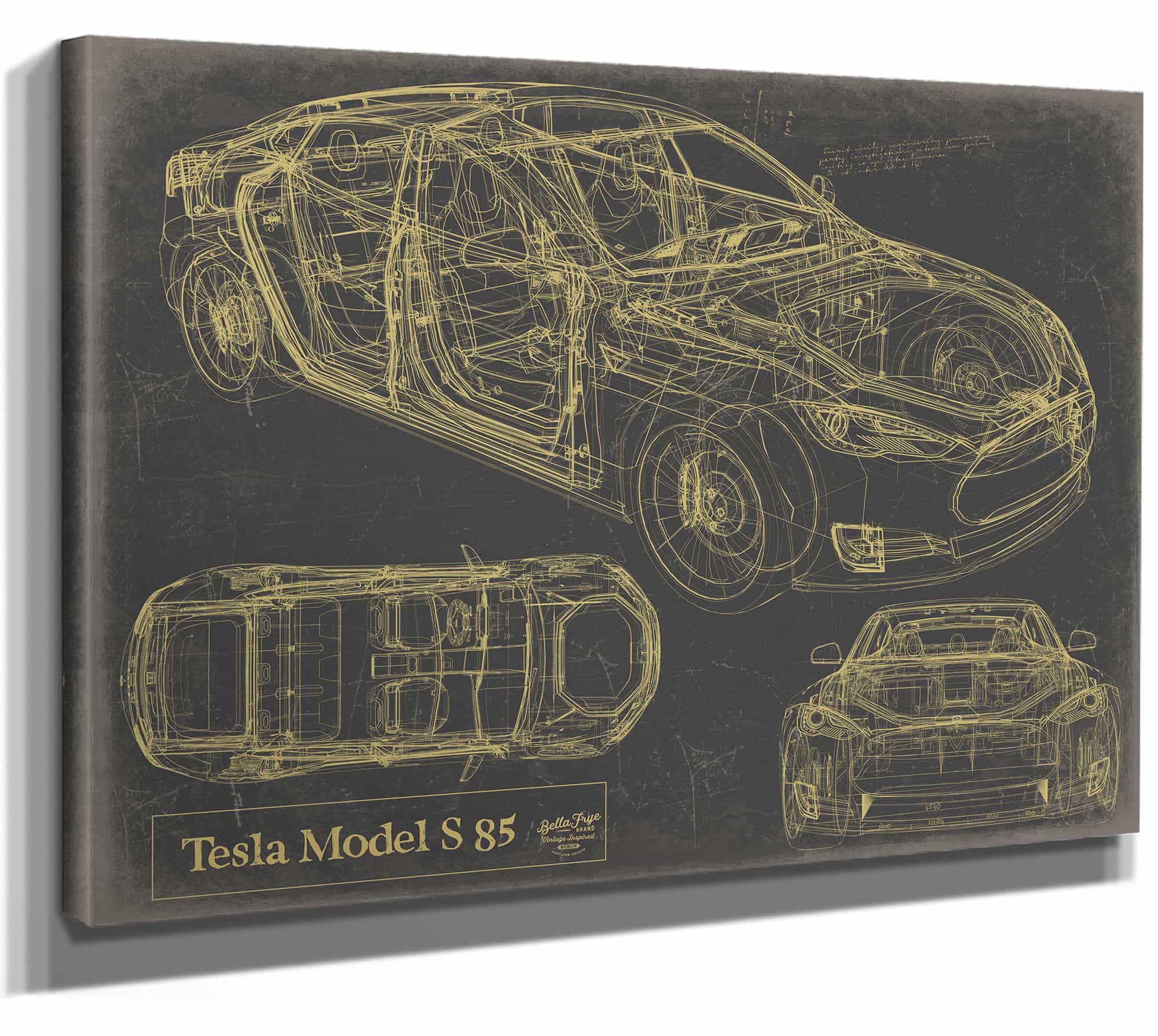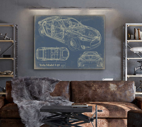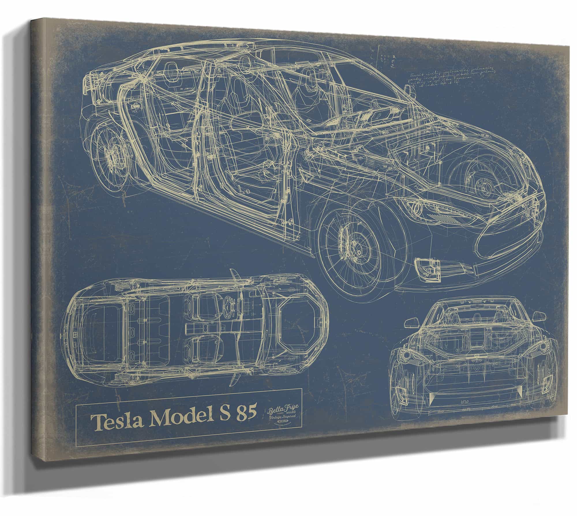 • Bella Frye Home & Garden > Decor > Artwork 24" x 18" / Stretched Canvas Wrap / Blue Tesla Model S 85  Original Artwork