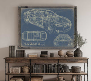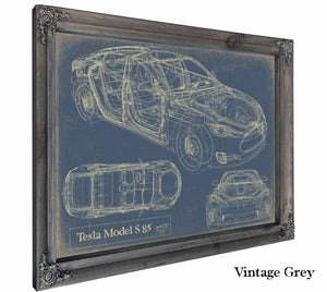 • Bella Frye Home & Garden > Decor > Artwork 24" x 18" / Grey Frame / Blue Tesla Model S 85  Original Artwork