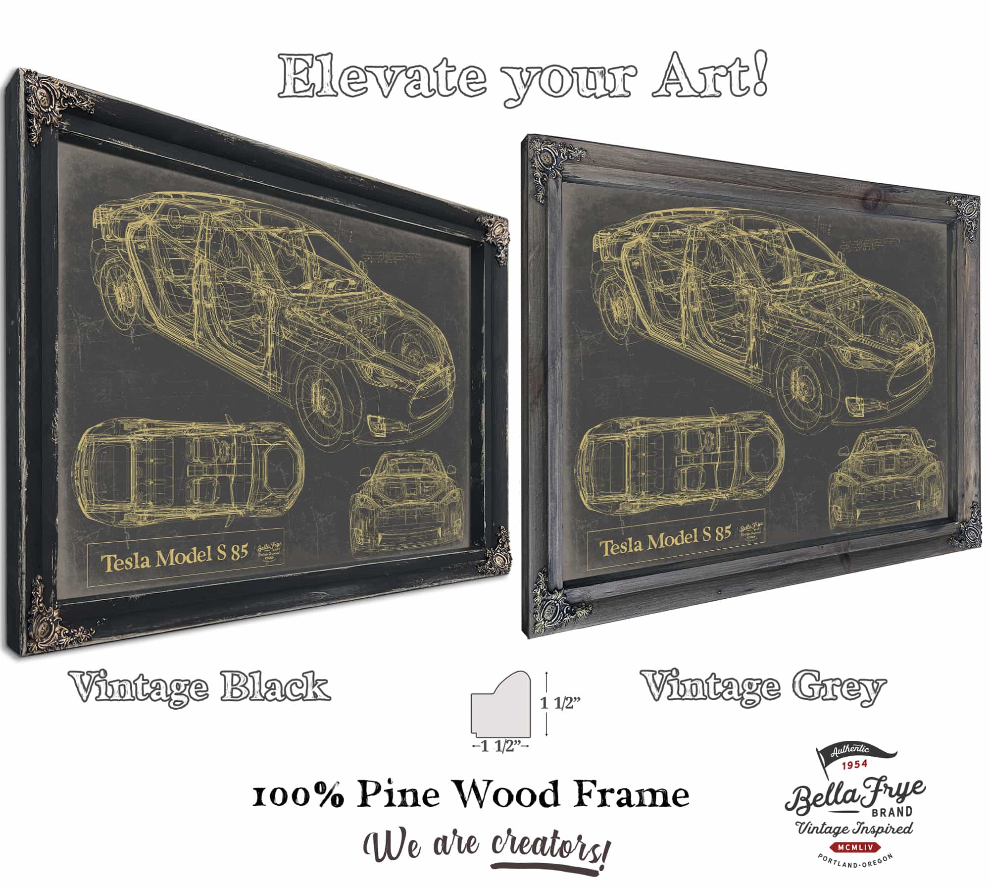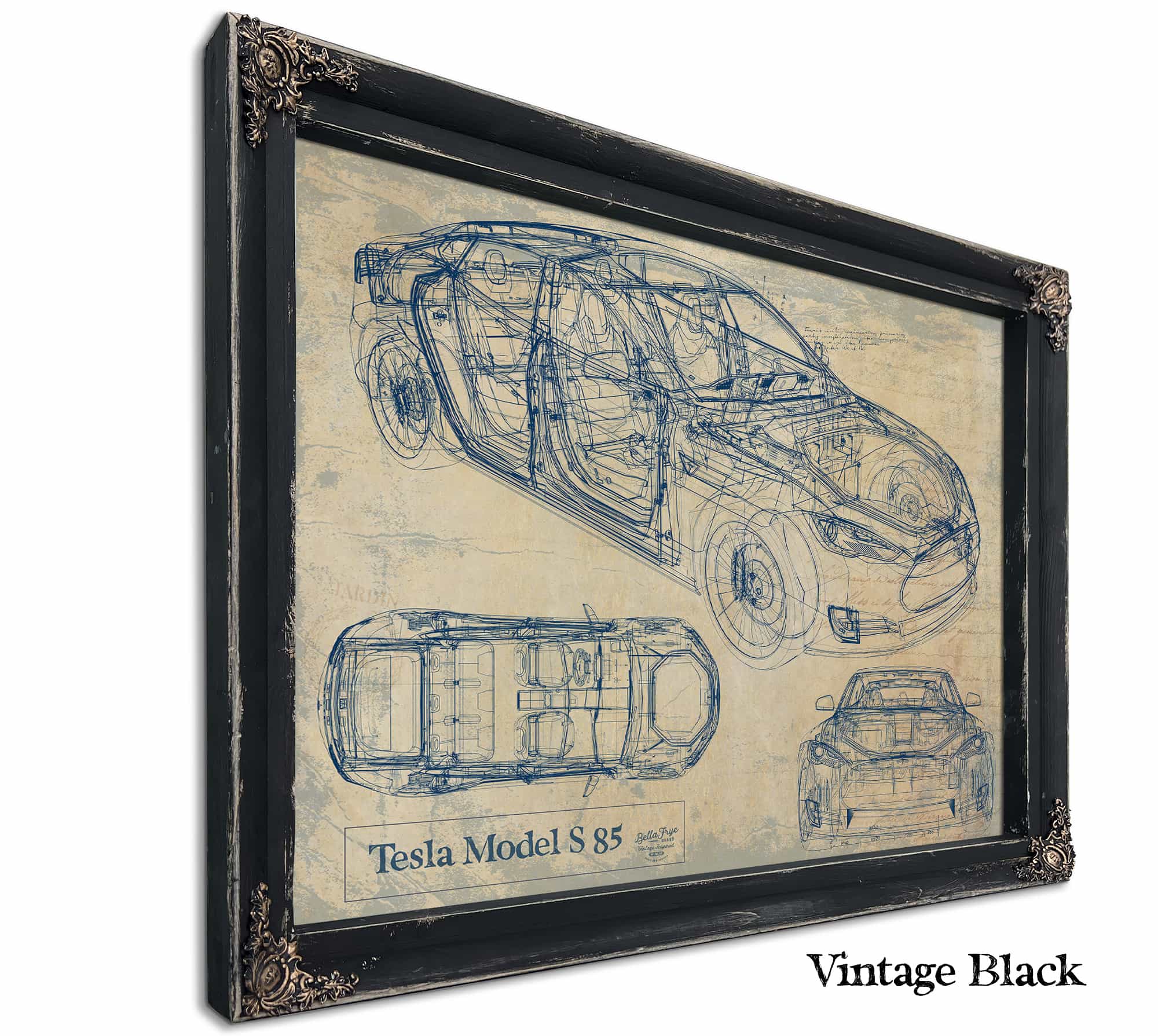 • Bella Frye Home & Garden > Decor > Artwork 24" x 18" / Black Frame / Blue Tesla Model S 85  Original Artwork