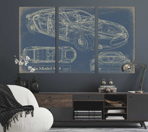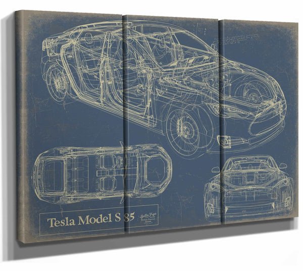 • Bella Frye Home & Garden > Decor > Artwork 36" x 24" / 3 Panel Canvas Wrap / Blue Tesla Model S 85  Original Artwork