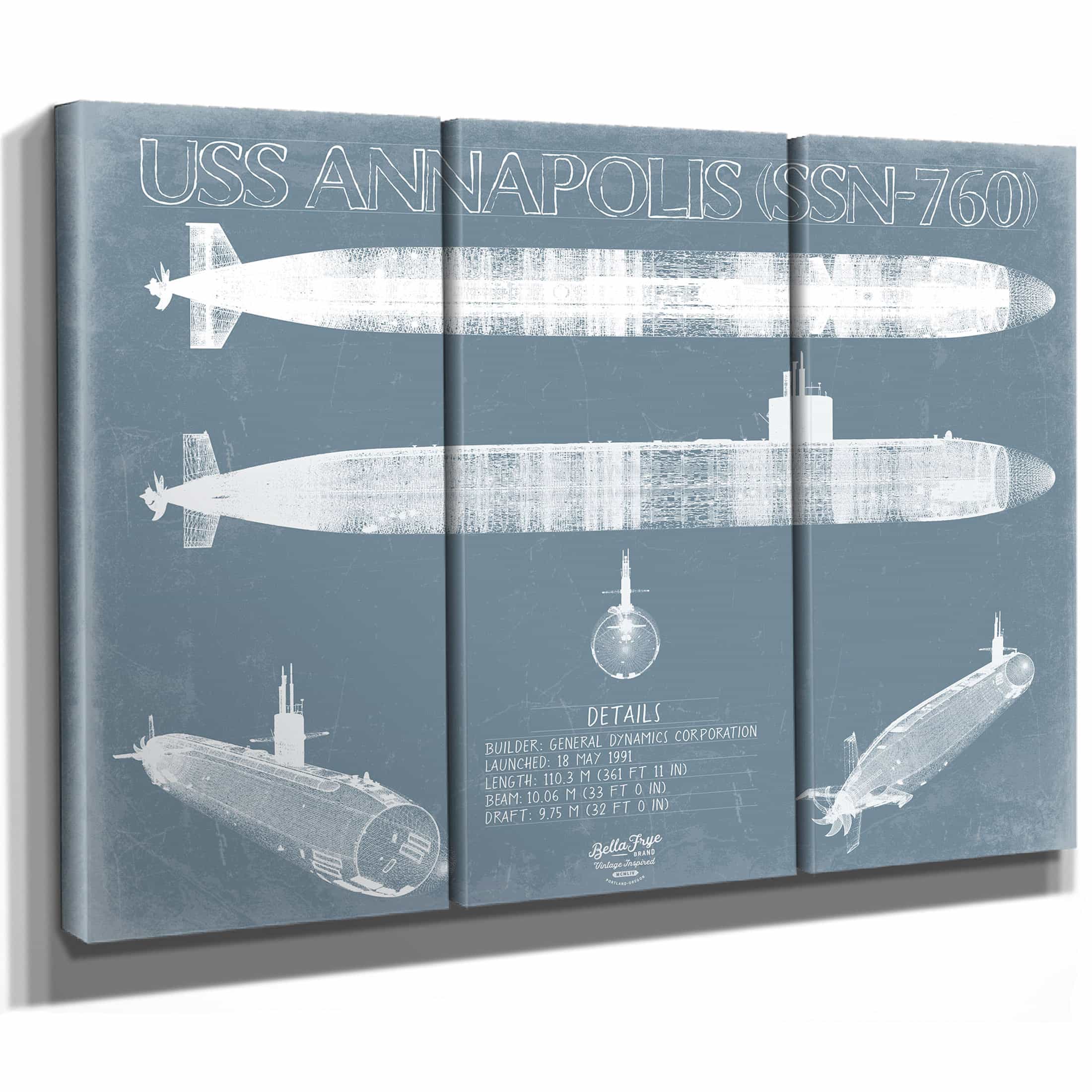 USS Annapolis (SSN-760) Blueprint Wall Art - Original Submarine Print