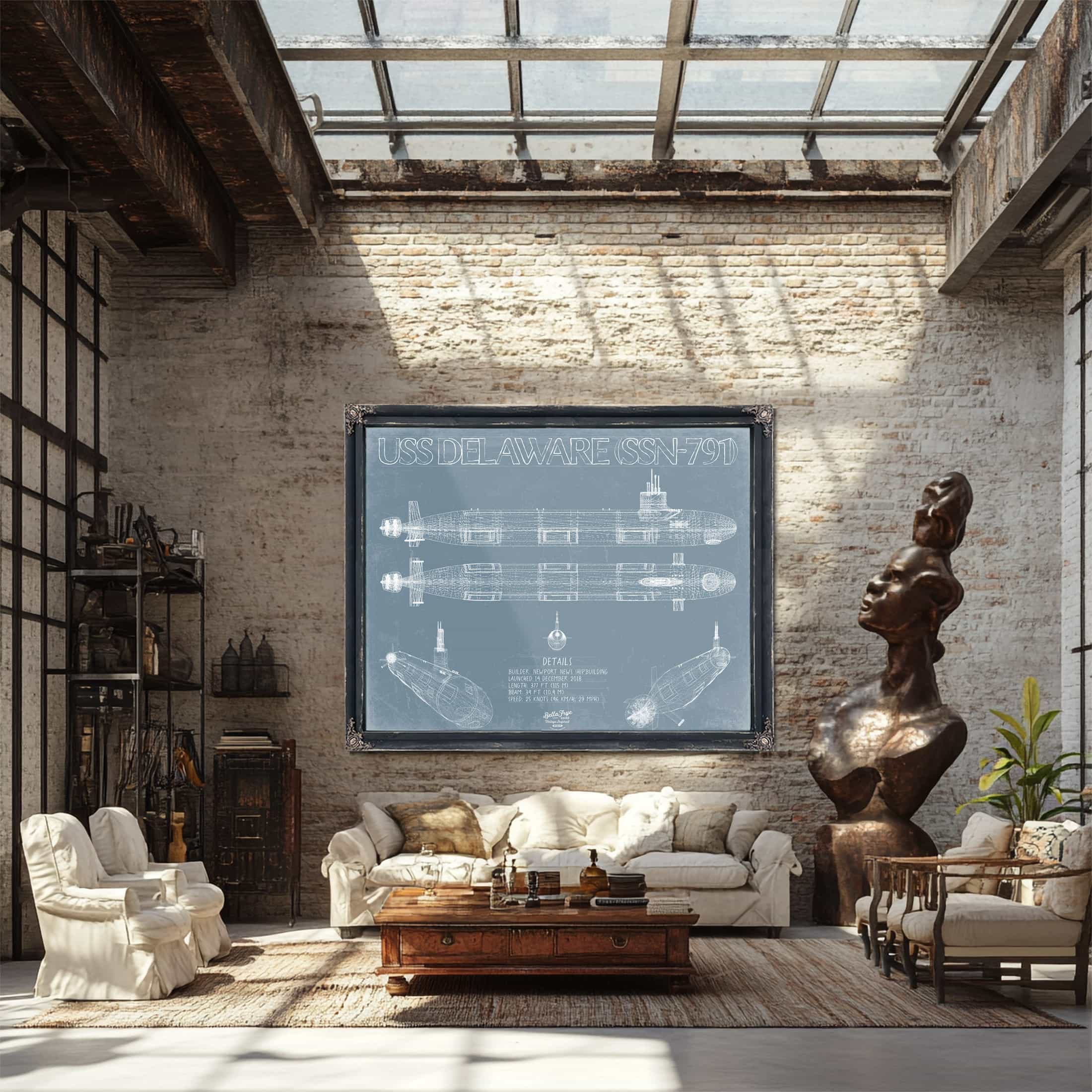 • Bella Frye Home & Garden > Decor > Artwork USS Delaware (SSN-791) Blueprint Wall Art - Original Submarine Print