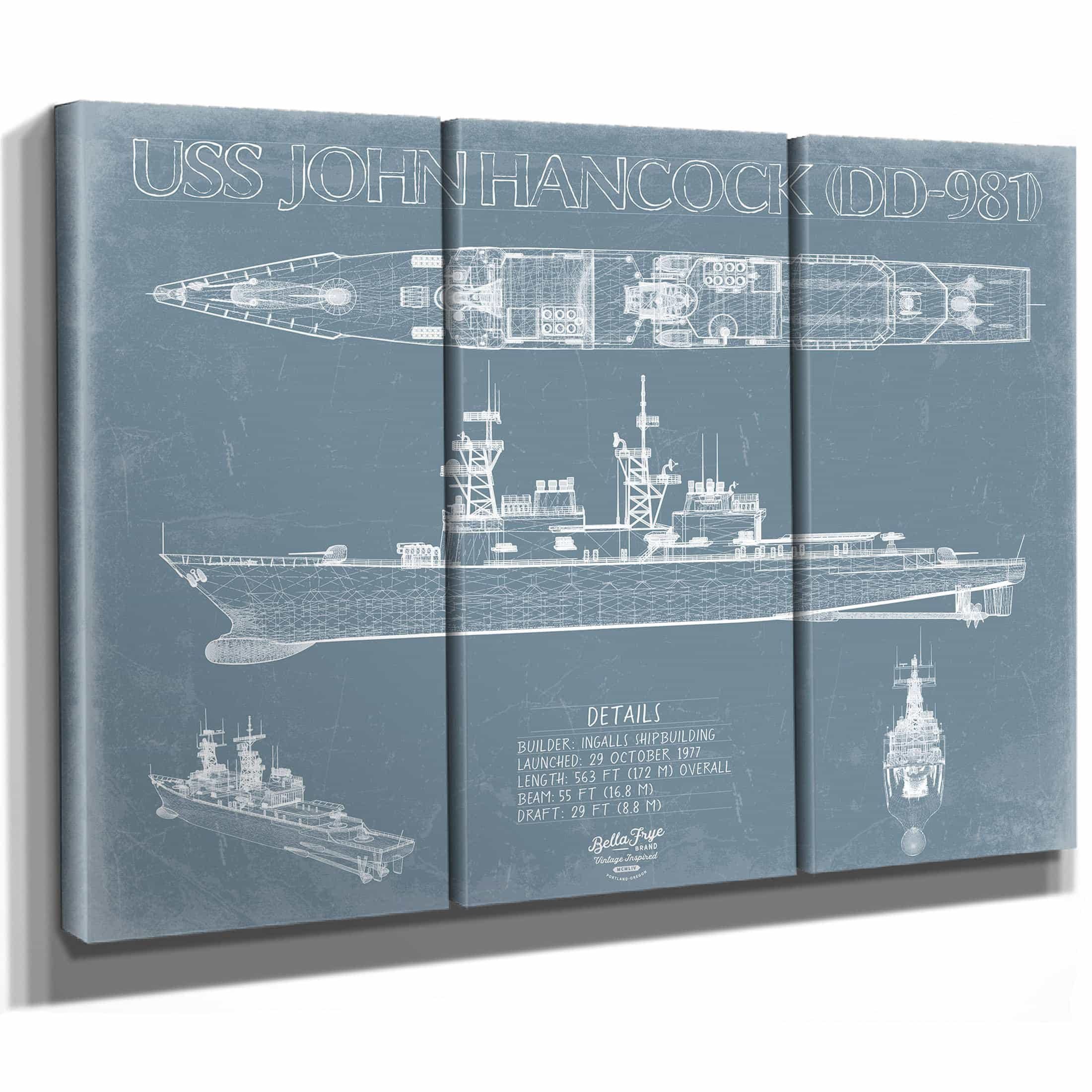 • Bella Frye Home & Garden > Decor > Artwork USS John Hancock (DD-981) Blueprint Wall Art - Original Destroyer Print