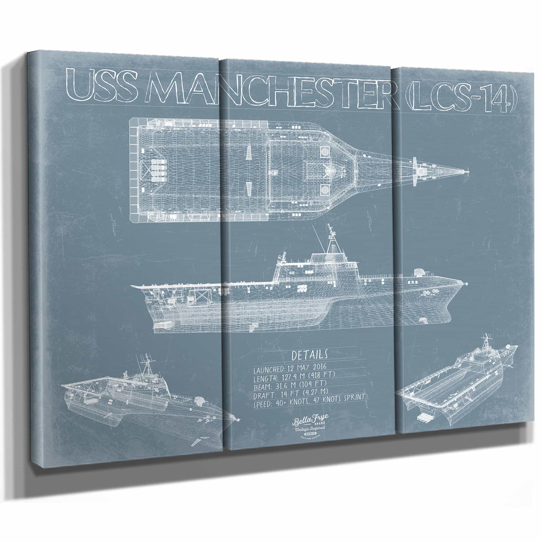 • Bella Frye Home & Garden > Decor > Artwork USS Manchester (LCS-14) Blueprint Wall Art