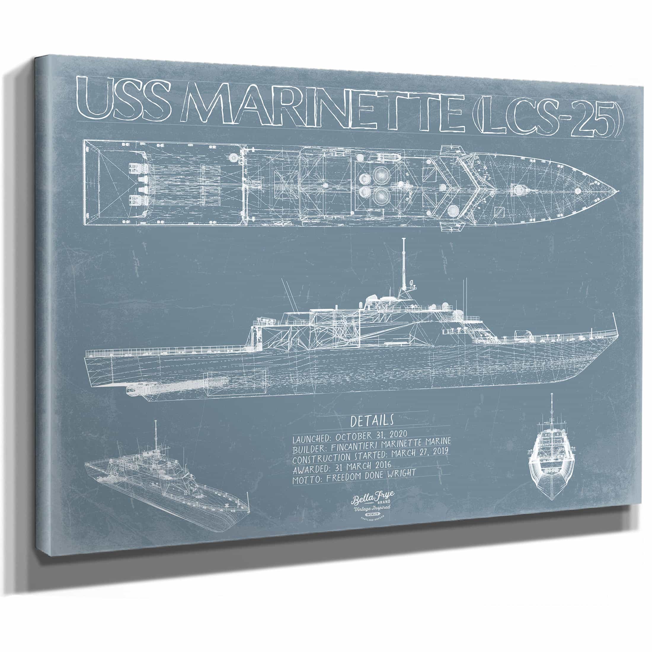 • Bella Frye Home & Garden > Decor > Artwork USS Marinette (LCS-25) Blueprint Wall Art - Original Littoral Combat Ship Print