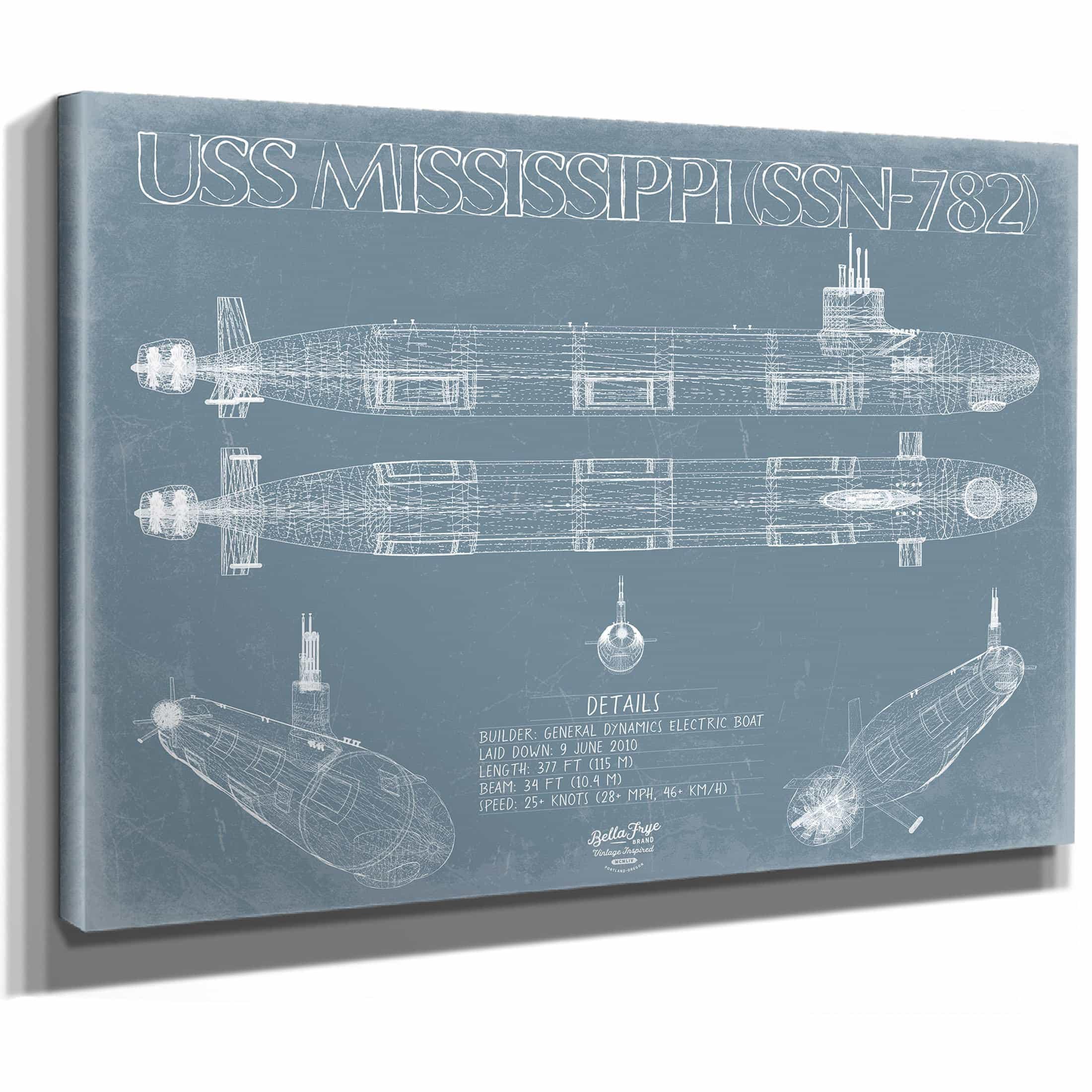 • Bella Frye Home & Garden > Decor > Artwork USS Mississippi (SSN-782) Blueprint Wall Art - Original Submarine Print