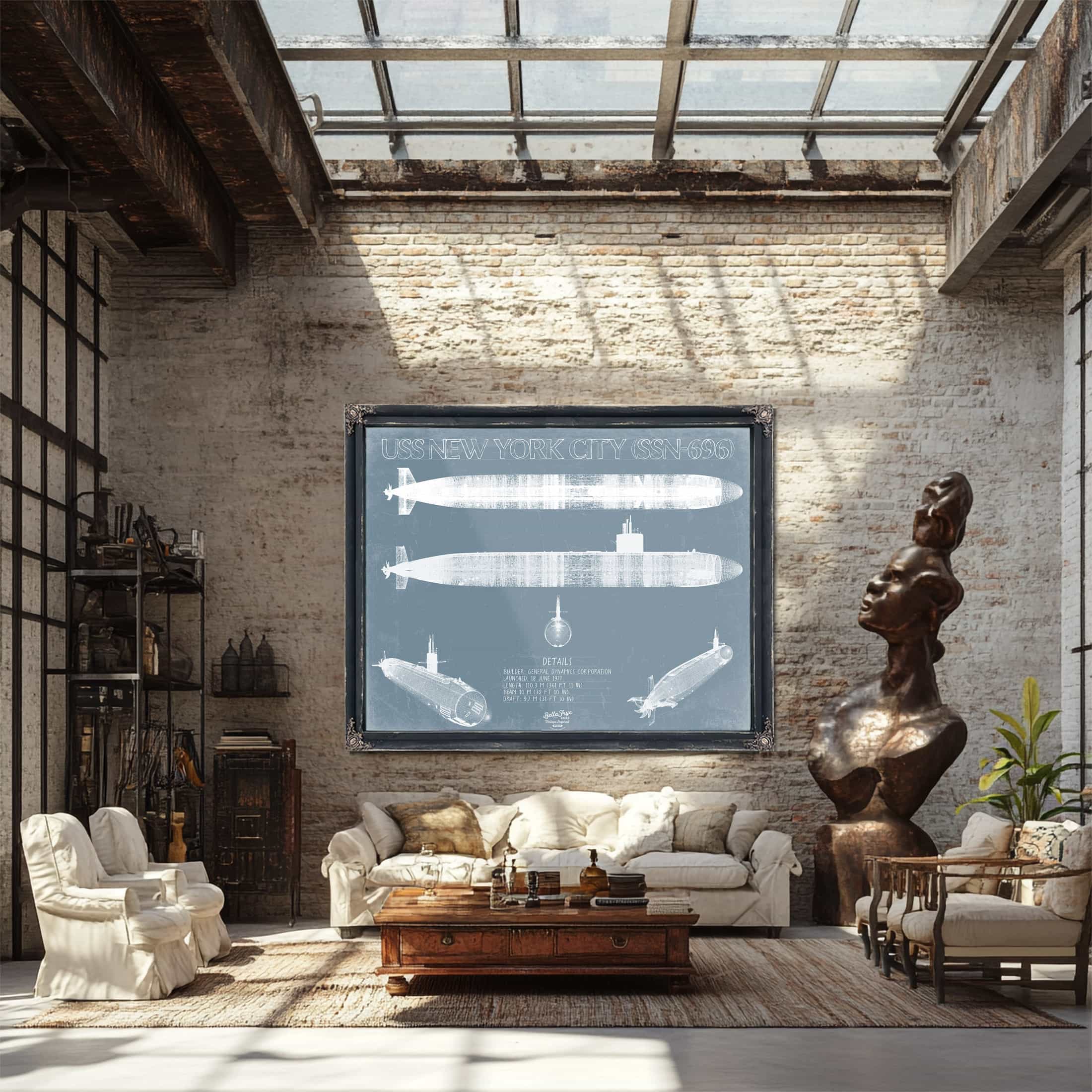 • Bella Frye Home & Garden > Decor > Artwork USS New York City (SSN-696) Blueprint Wall Art - Original Submarine Print