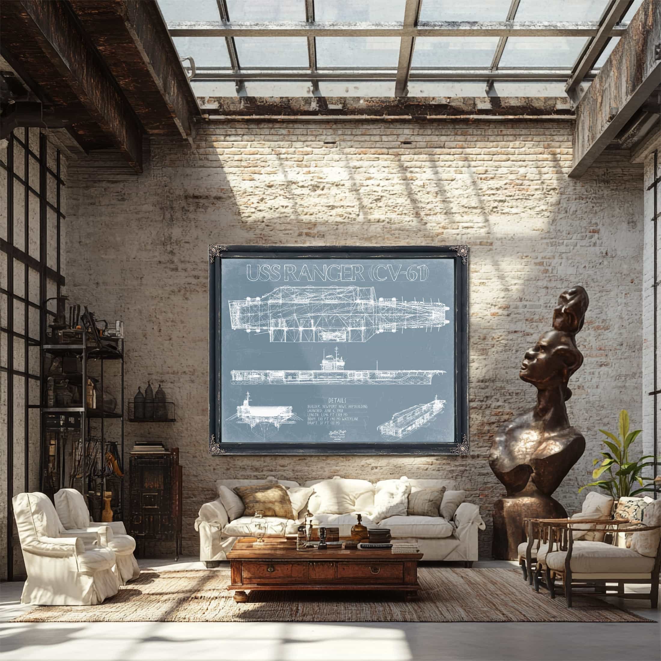• Bella Frye Home & Garden > Decor > Artwork USS Ranger (CV-61) Blueprint Wall Art - Original Carrier Print