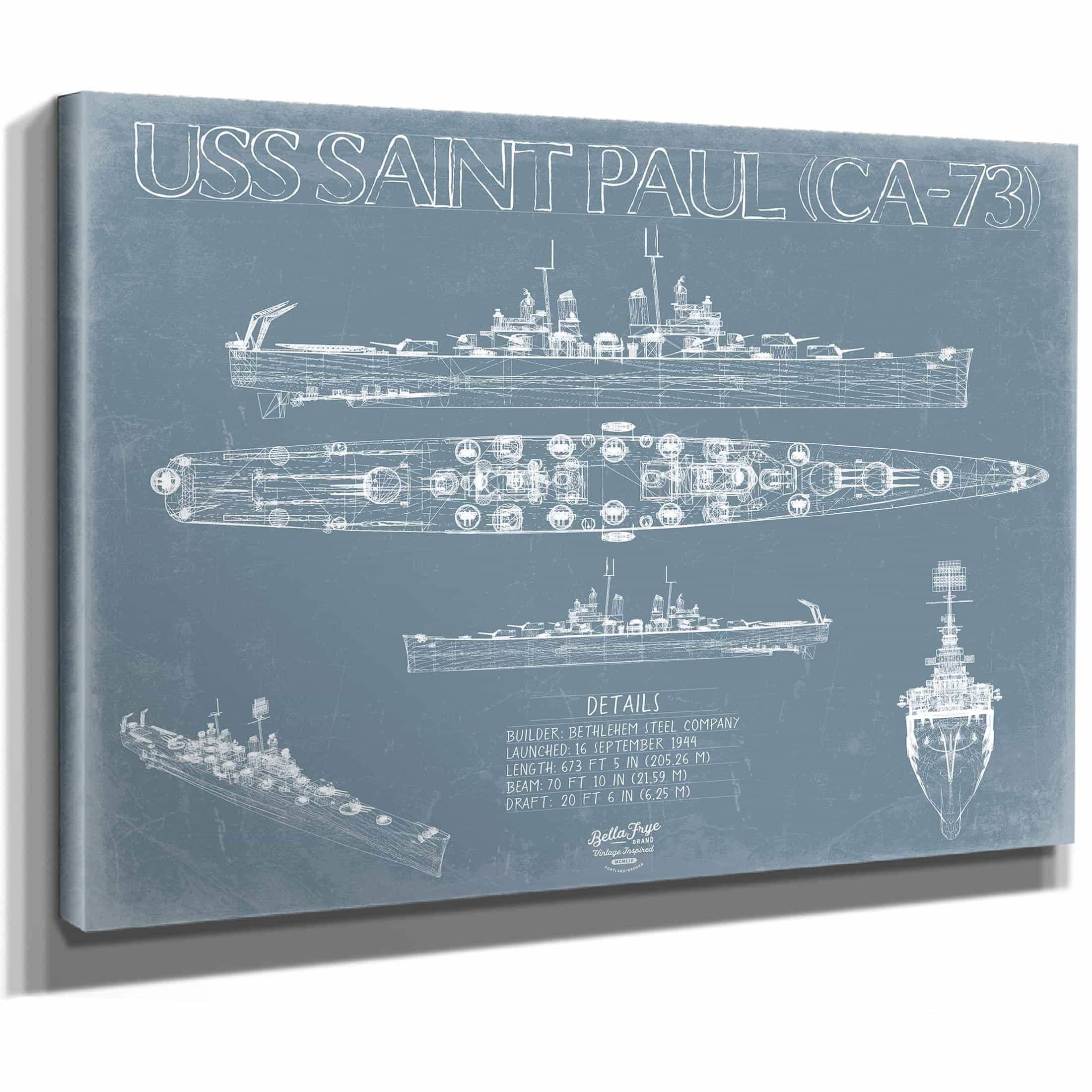 • Bella Frye Home & Garden > Decor > Artwork USS Saint Paul (CA-73) Blueprint Wall Art - Original Cruiser Print