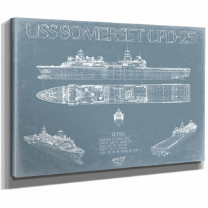 • Bella Frye Home & Garden > Decor > Artwork USS Somerset (LPD-25) Blueprint Wall Art - Original Amphibious Transport Dock Print