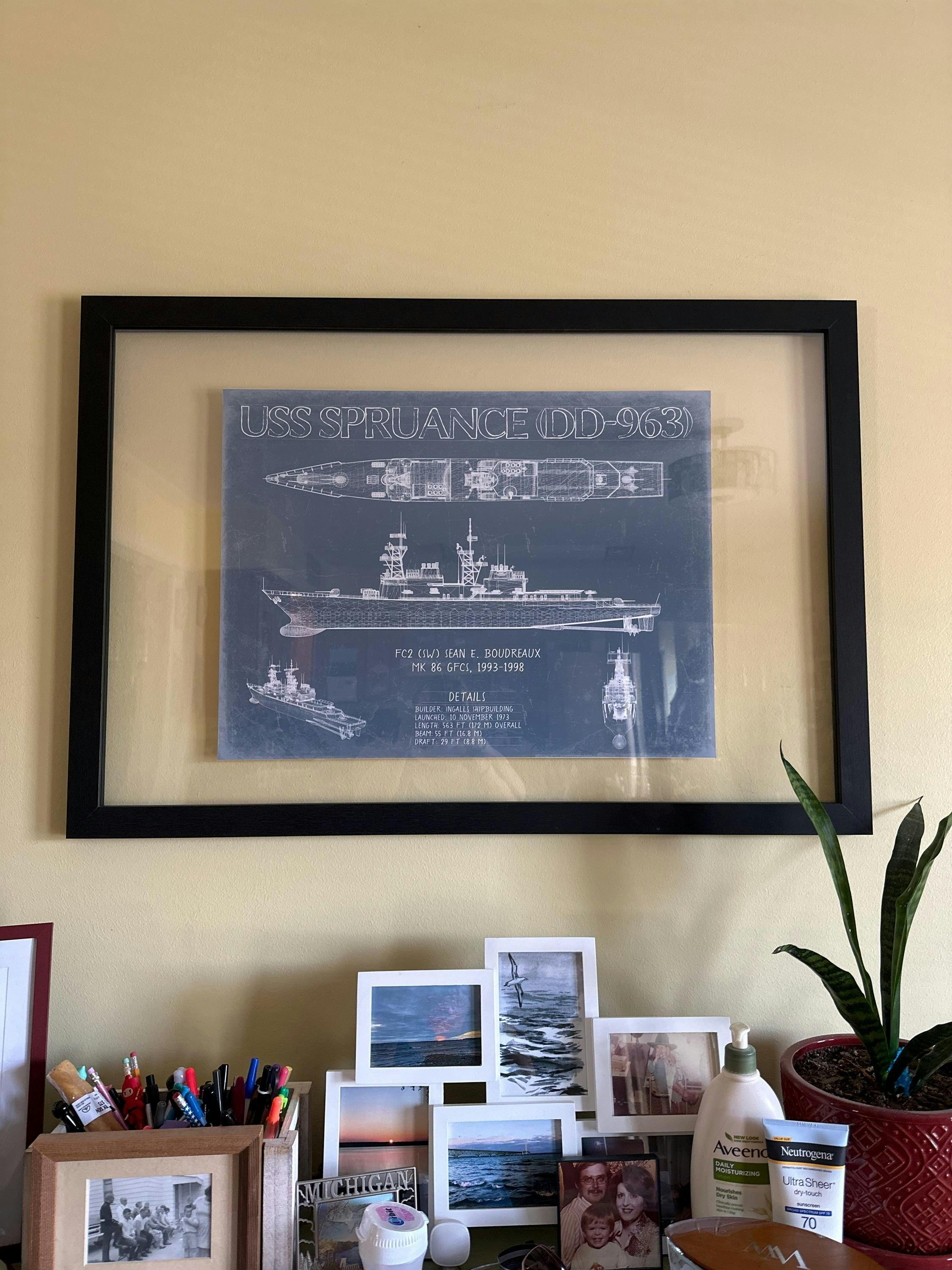 Proudly crafted in the USA, each blueprint is designed and printed in our studio with precision and care. Celebrate your service—or honor someone else’s—with a personalized naval blueprint that captures the spirit of the sea.