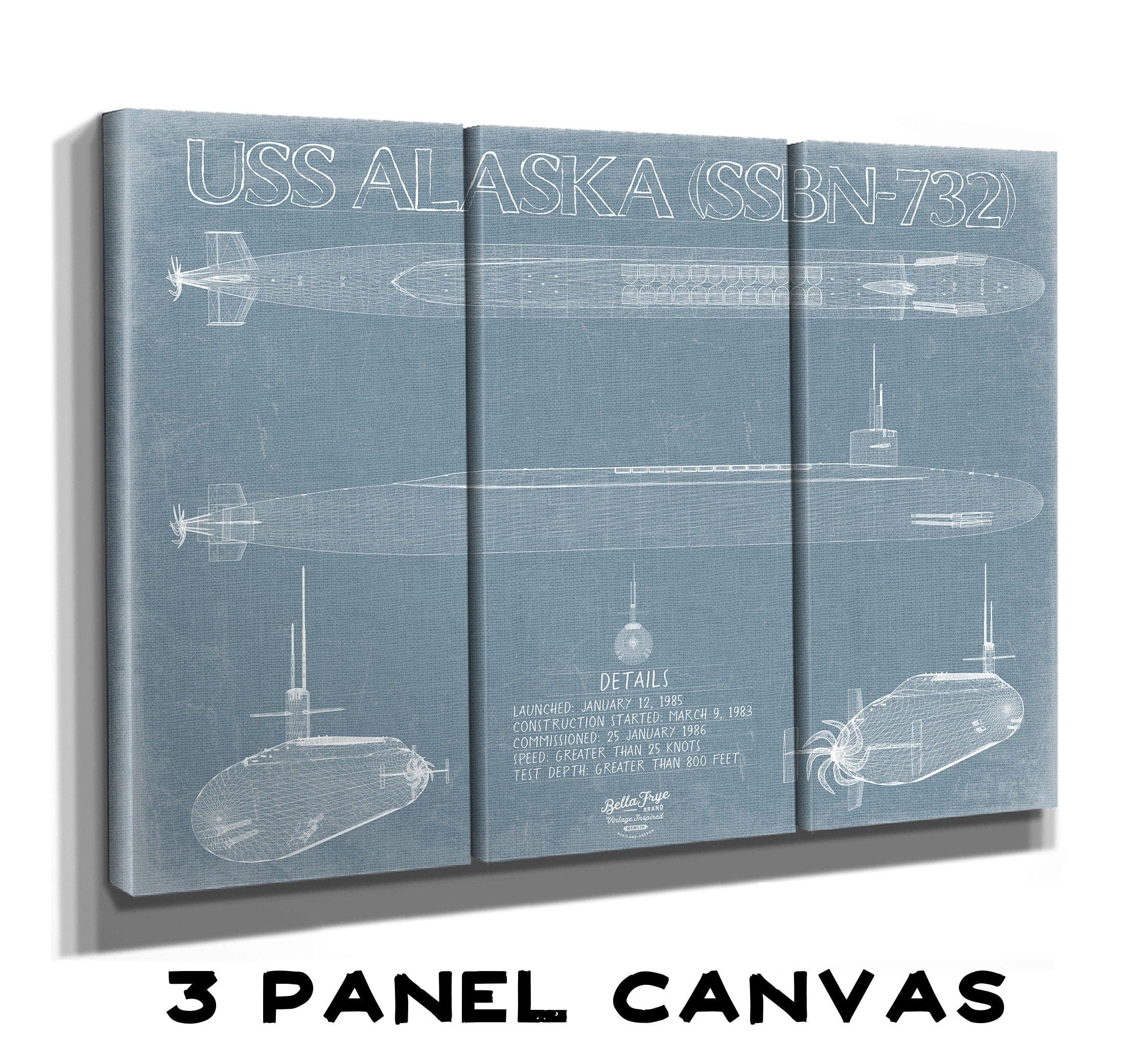 • Bella Frye Home & Garden > Decor > Artwork USS Alaska (SSBN-732) Blueprint Wall Art - Original Submarine Print