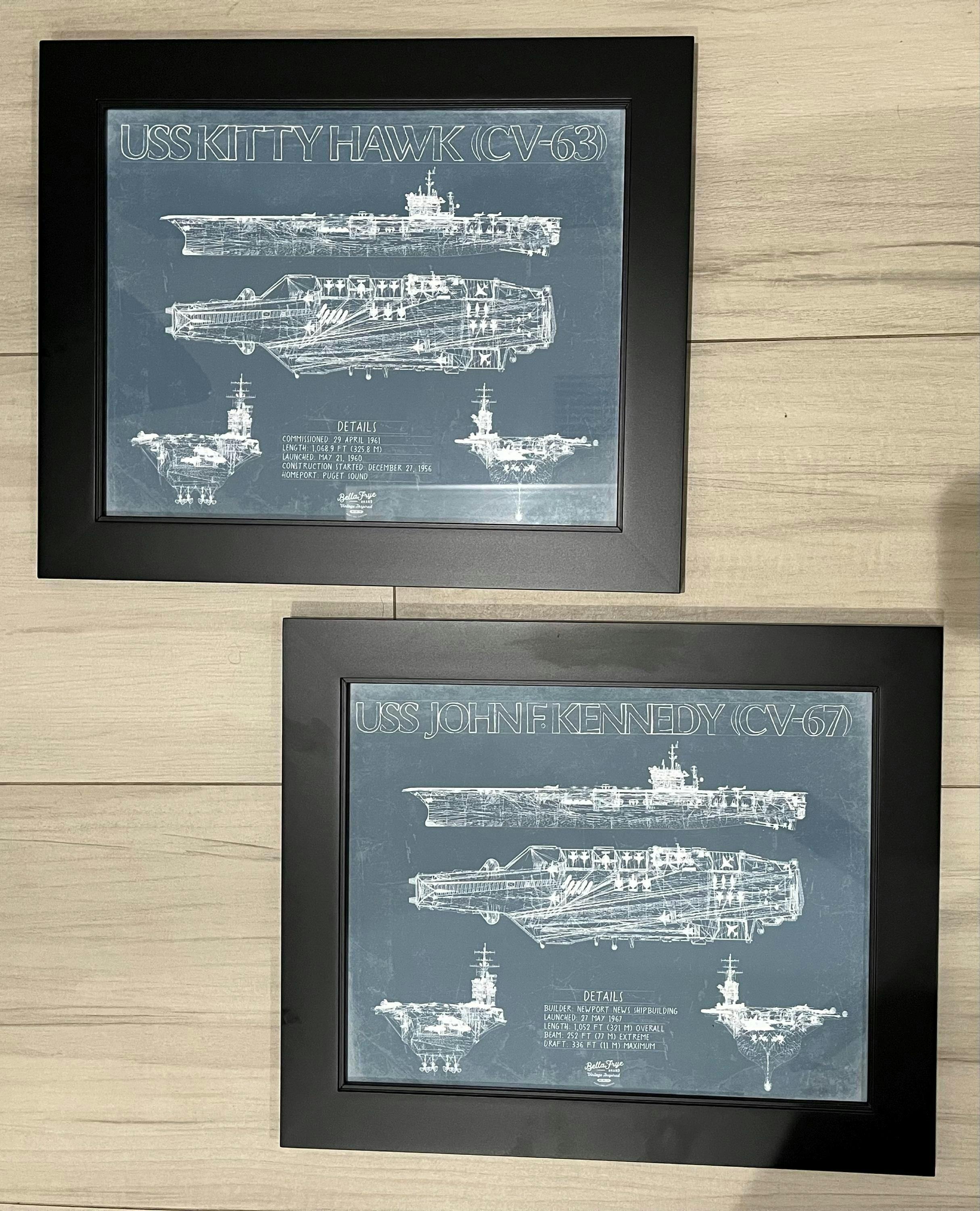 • Bella Frye Home & Garden > Decor > Artwork USS Kitty Hawk (CV-63) Supercarrier Blueprint Wall Art - Original Carrier Print
