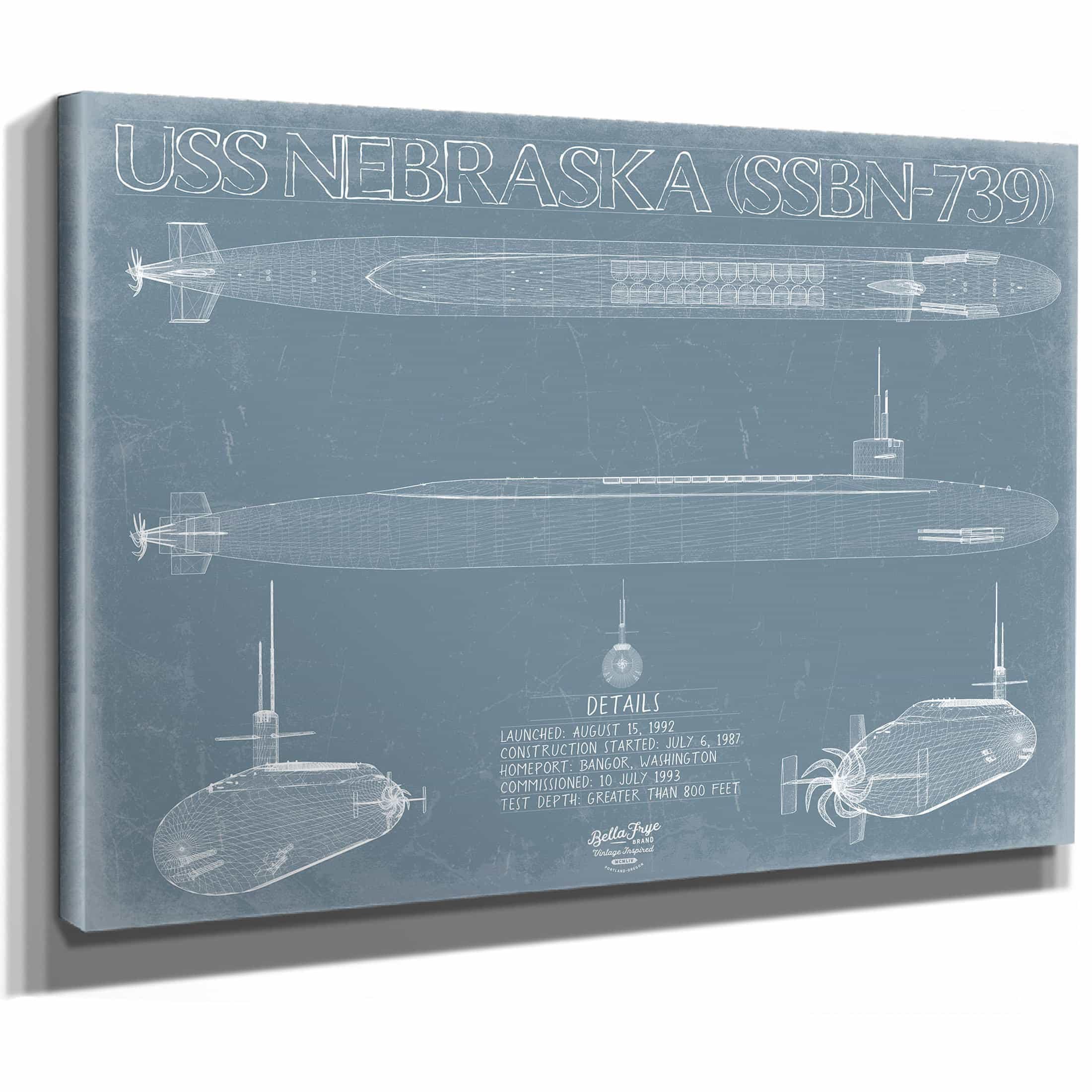 • Bella Frye Home & Garden > Decor > Artwork USS Nebraska (SSBN-739) Blueprint Wall Art - Original Submarine Print