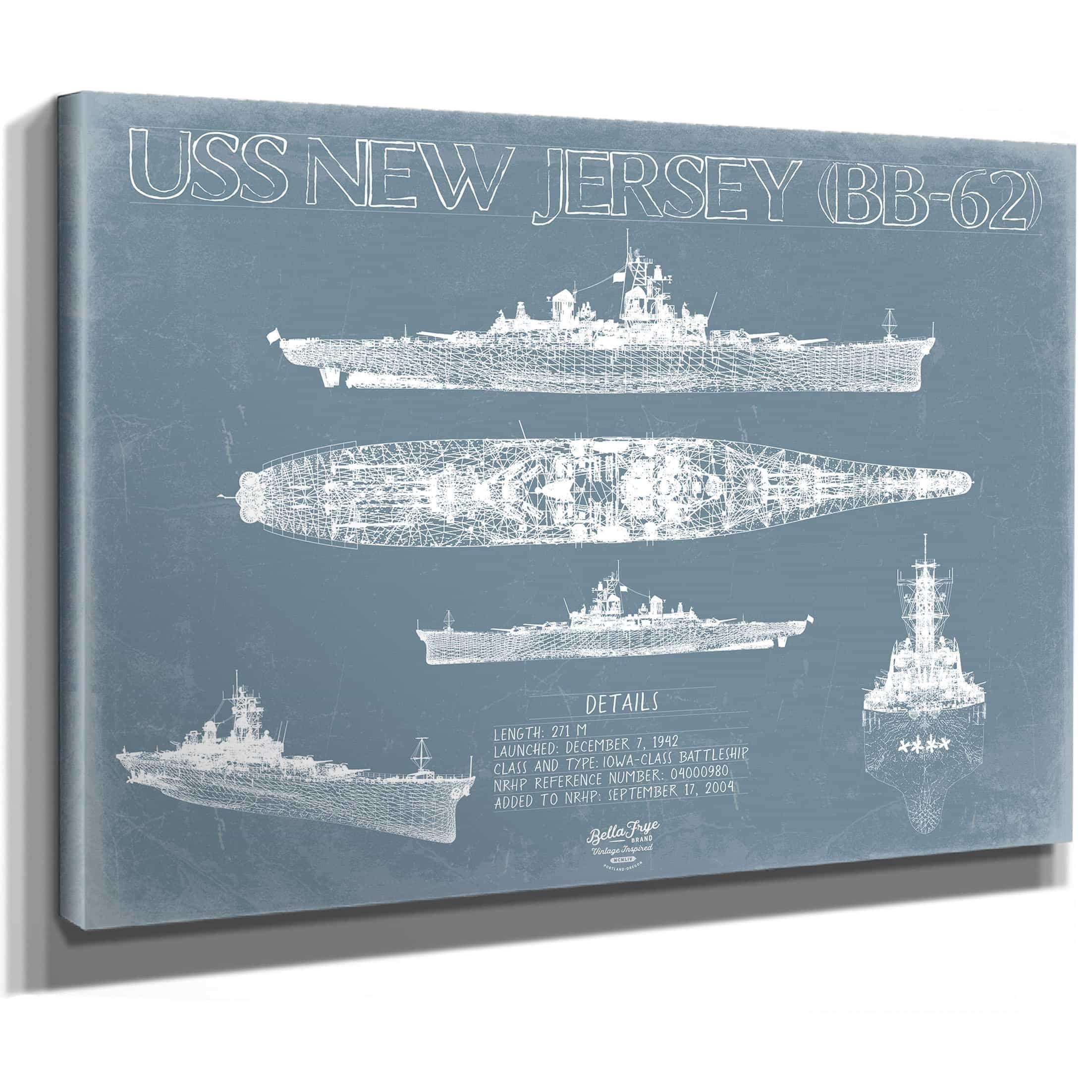 • Bella Frye Home & Garden > Decor > Artwork USS New Jersey (BB-62) Blueprint Wall Art - Original Battleship Print