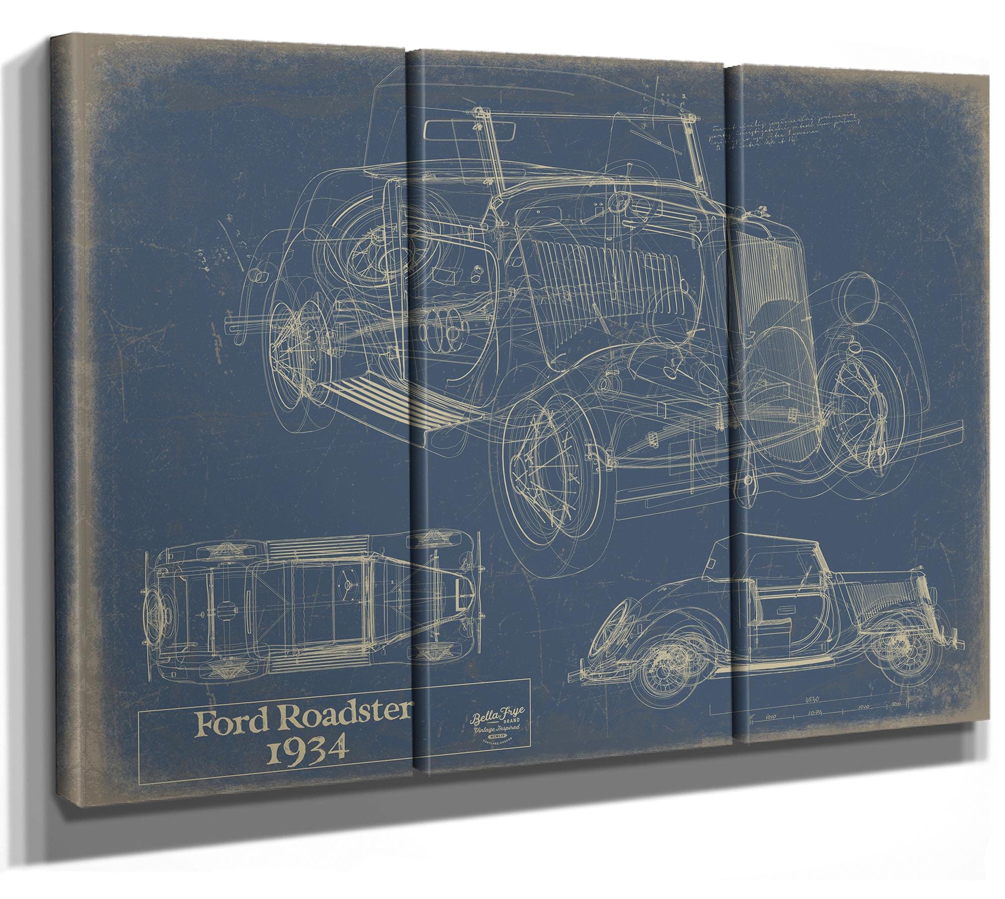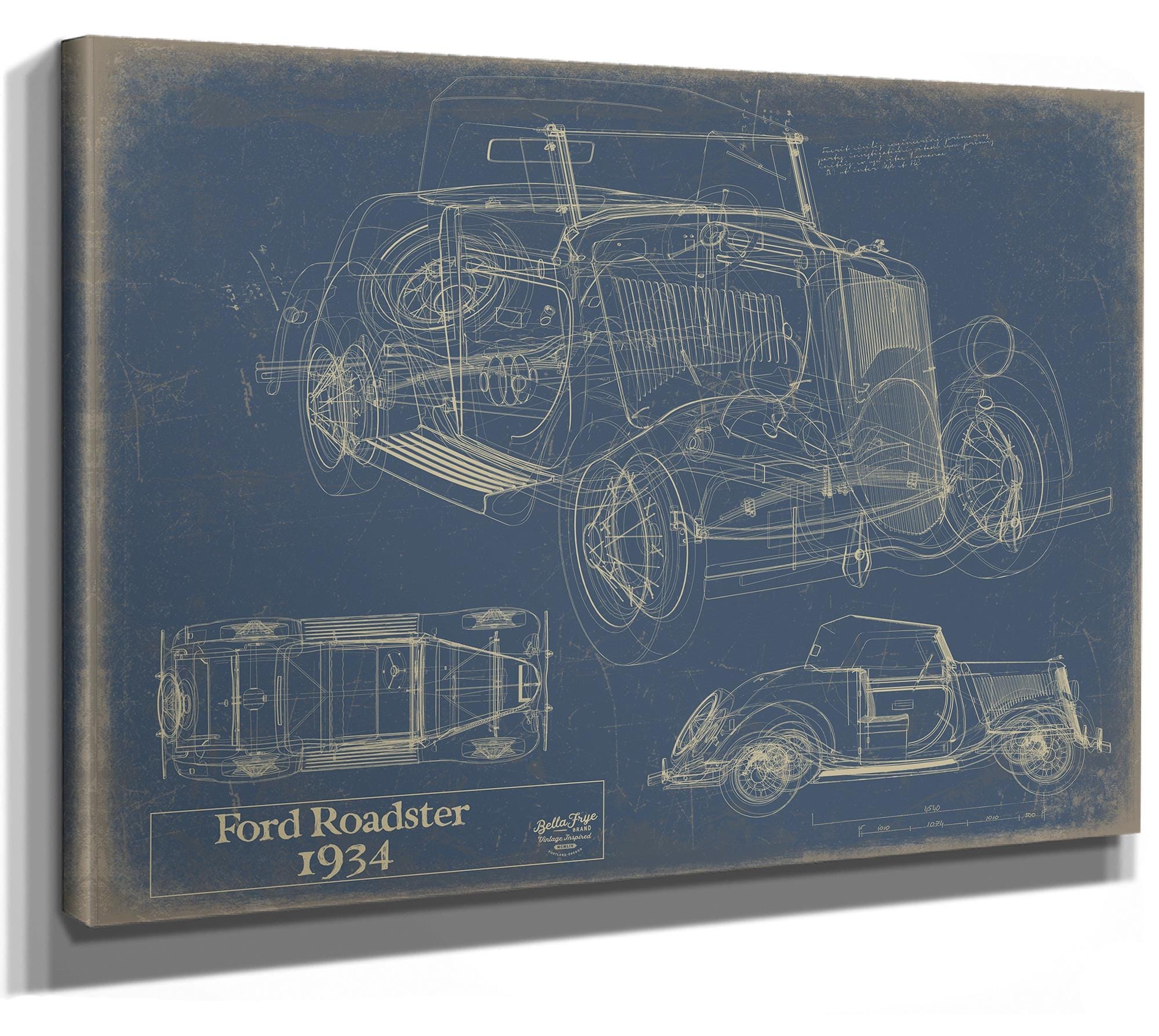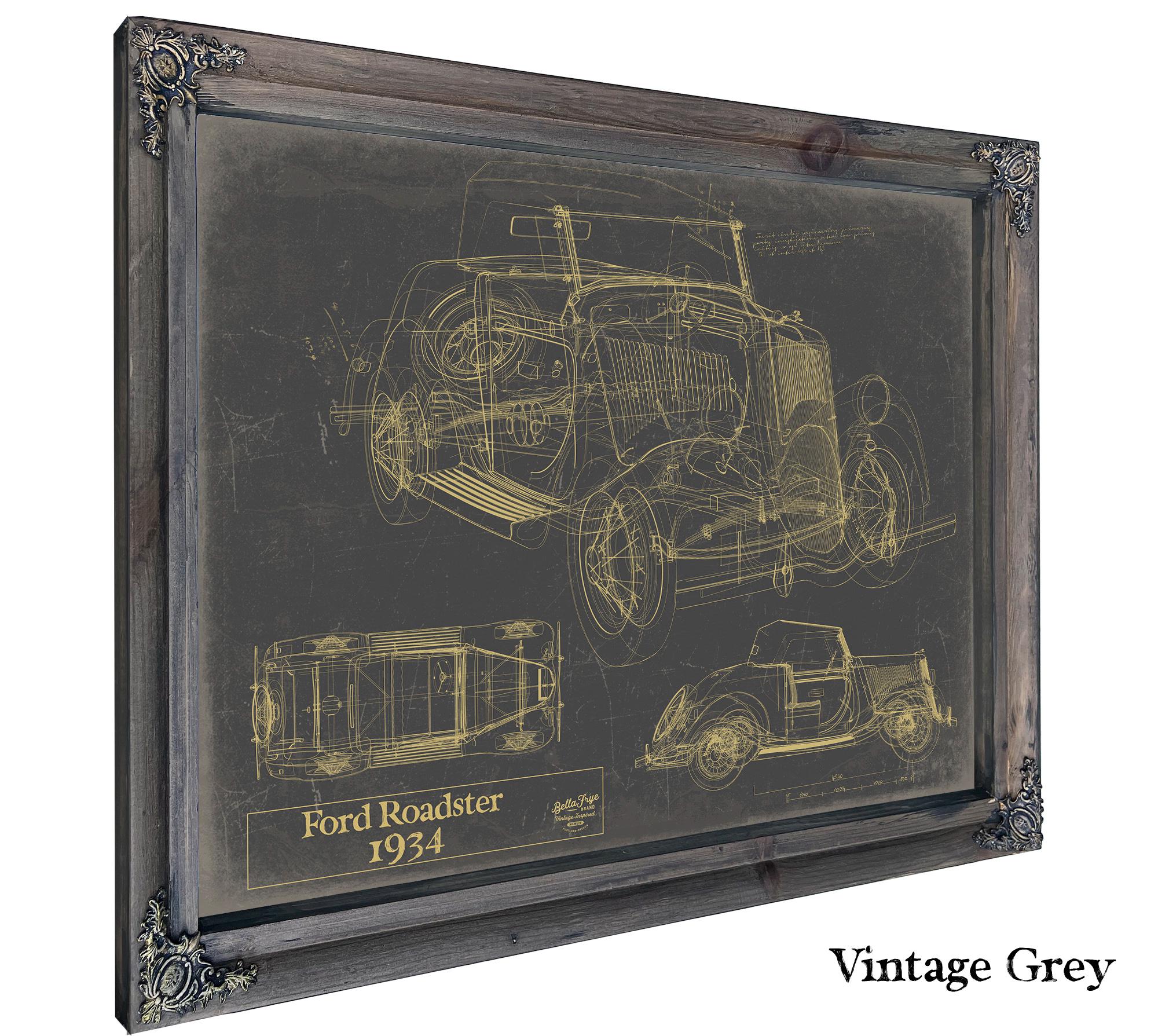 • Bella Frye Vintage 1934 Ford Roadster Model Print,  Original Blueprint Canvas, Framed, or Unframed Art