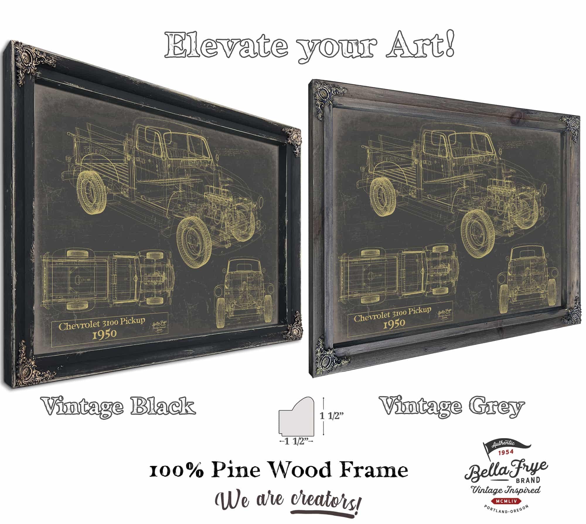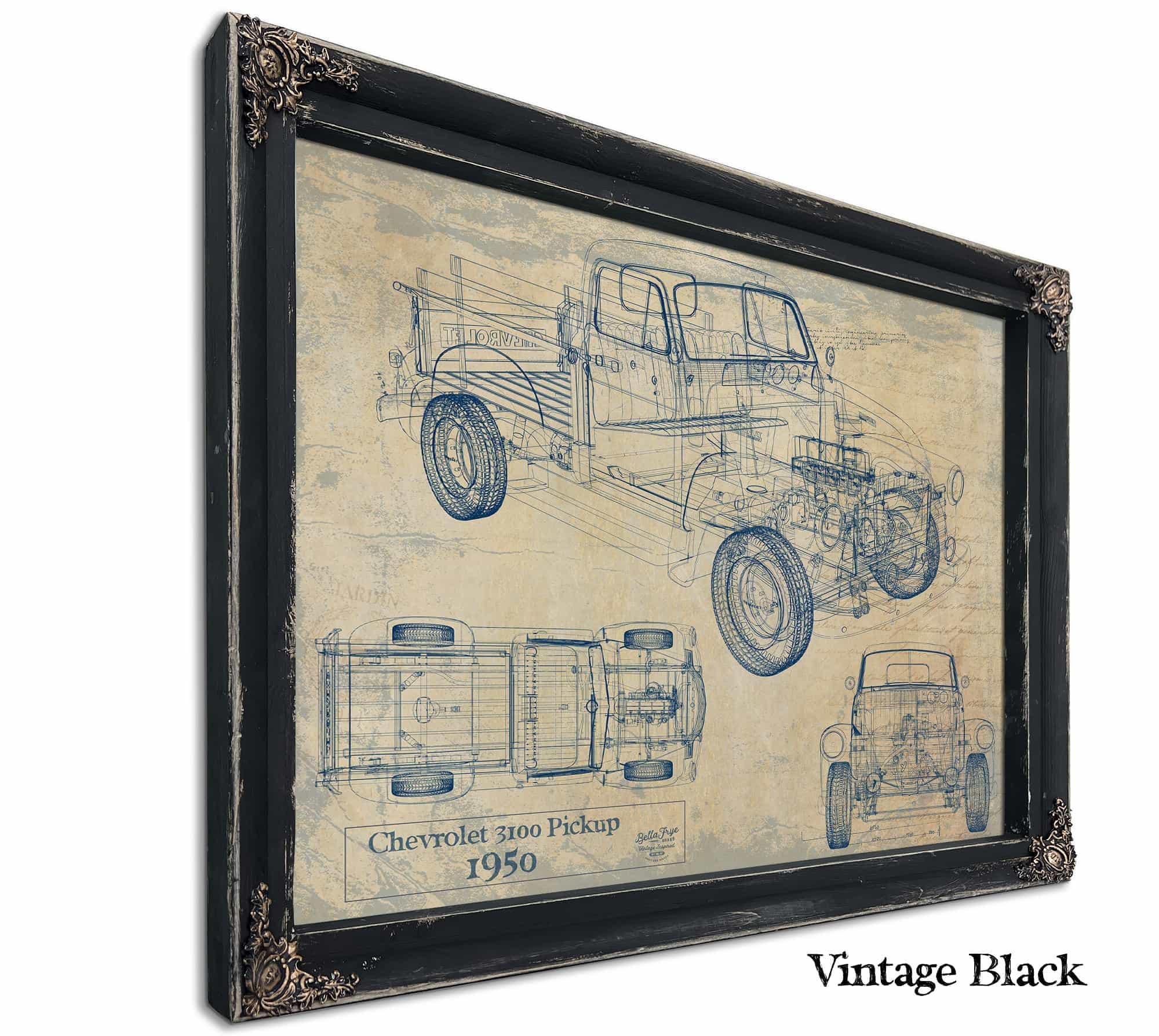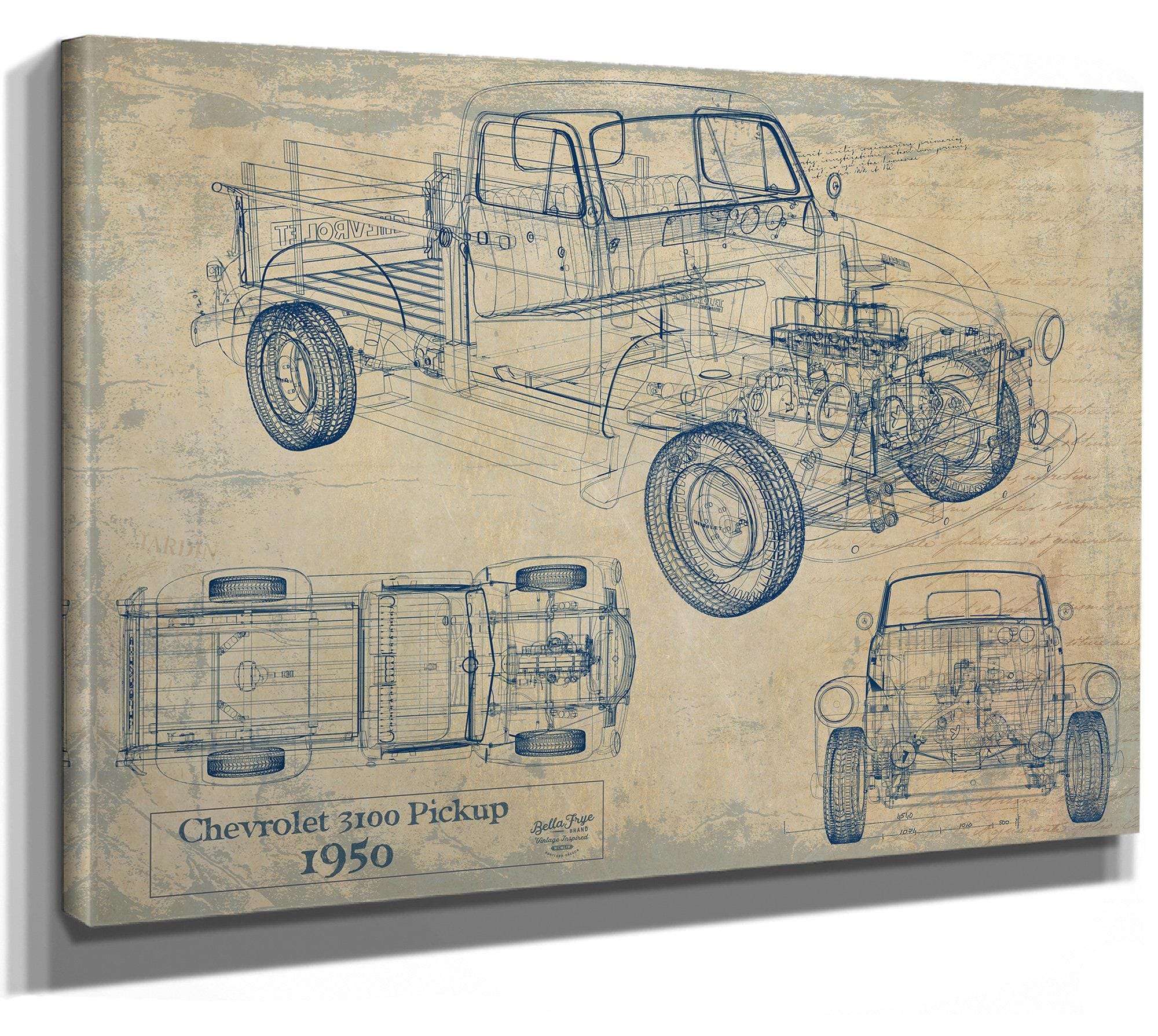• Bella Frye Vintage 1950 Chevrolet 3100 Pickup Model Mancave Blueprint Art
