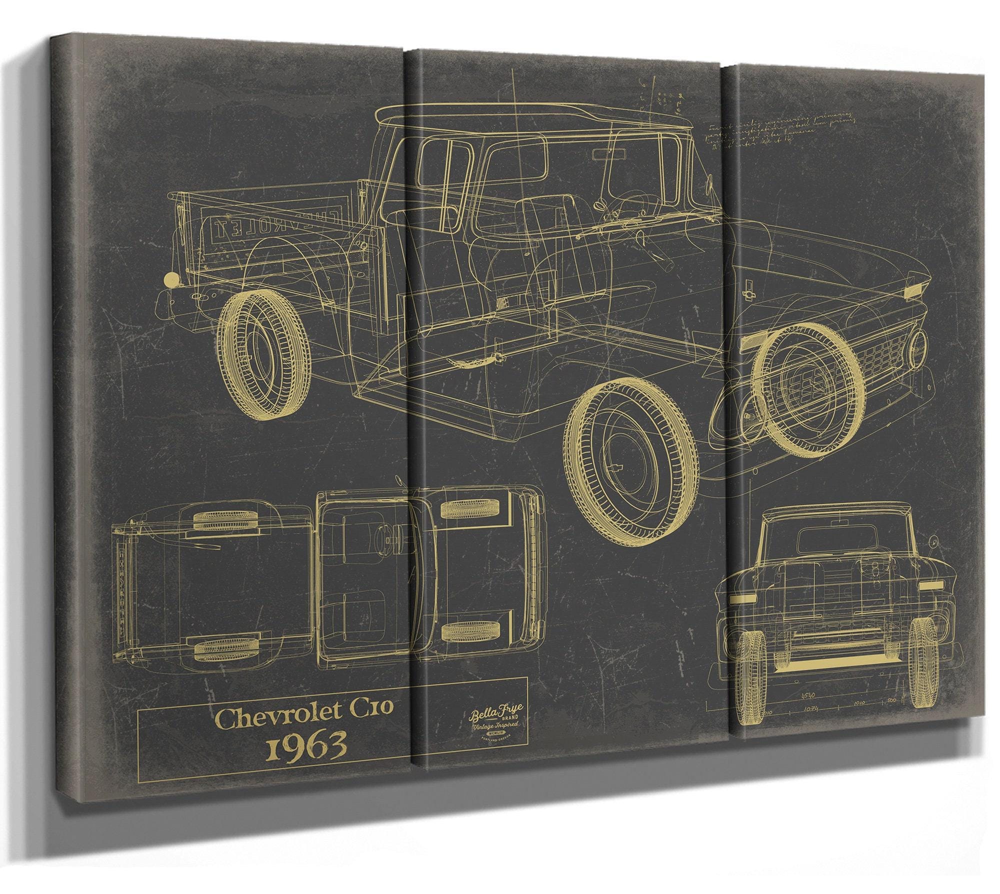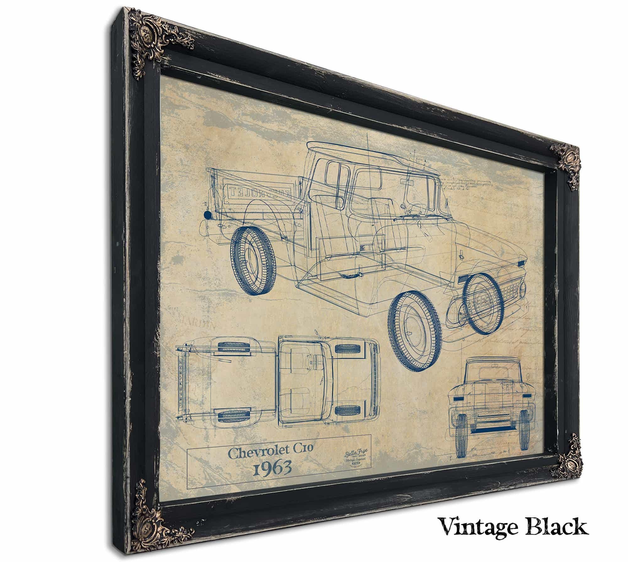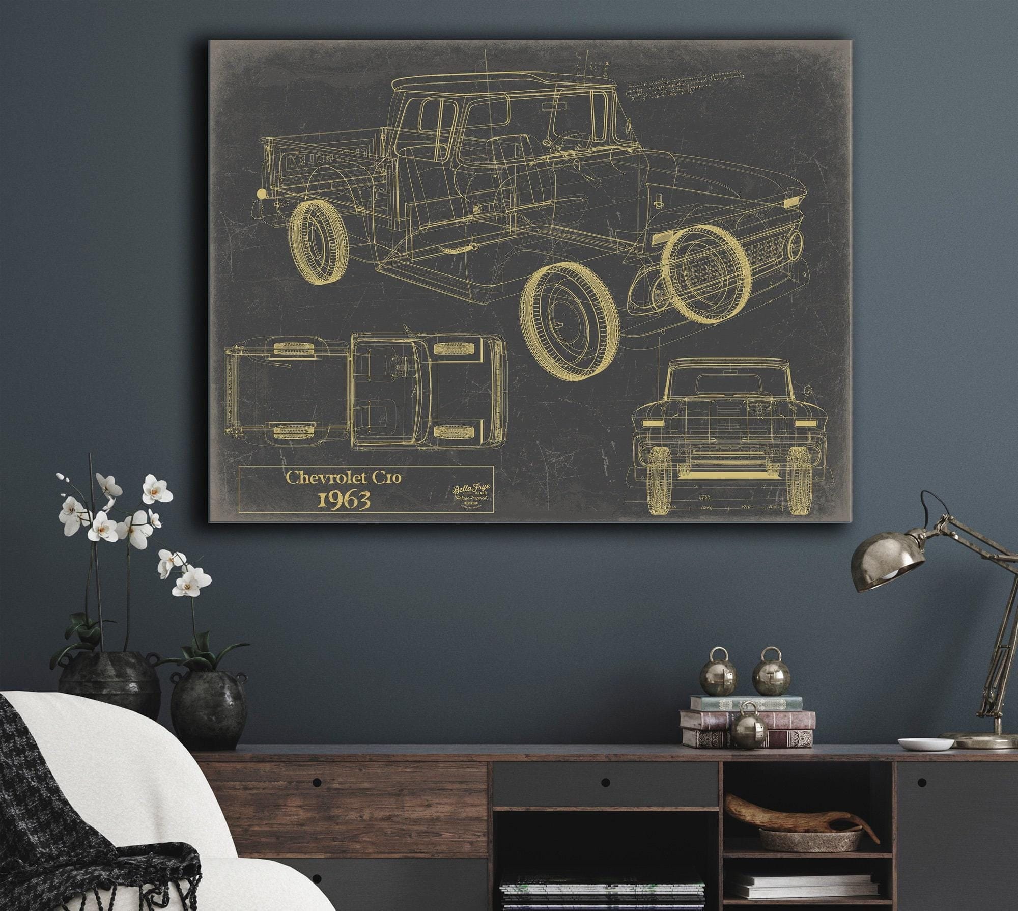 • Bella Frye Vintage 1963 Chevrolet C10 Car Model Print,  Original Blueprint Canvas