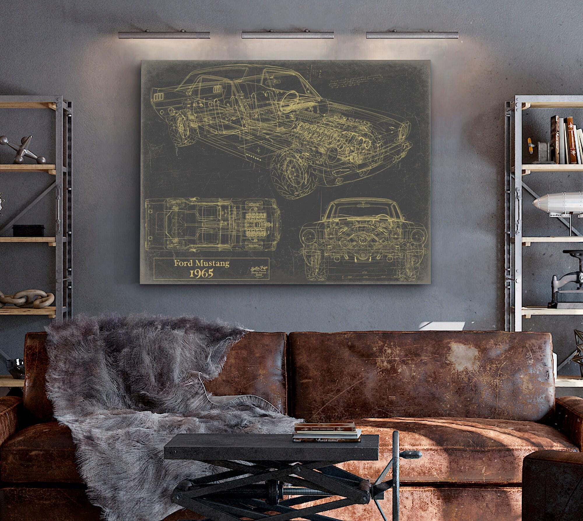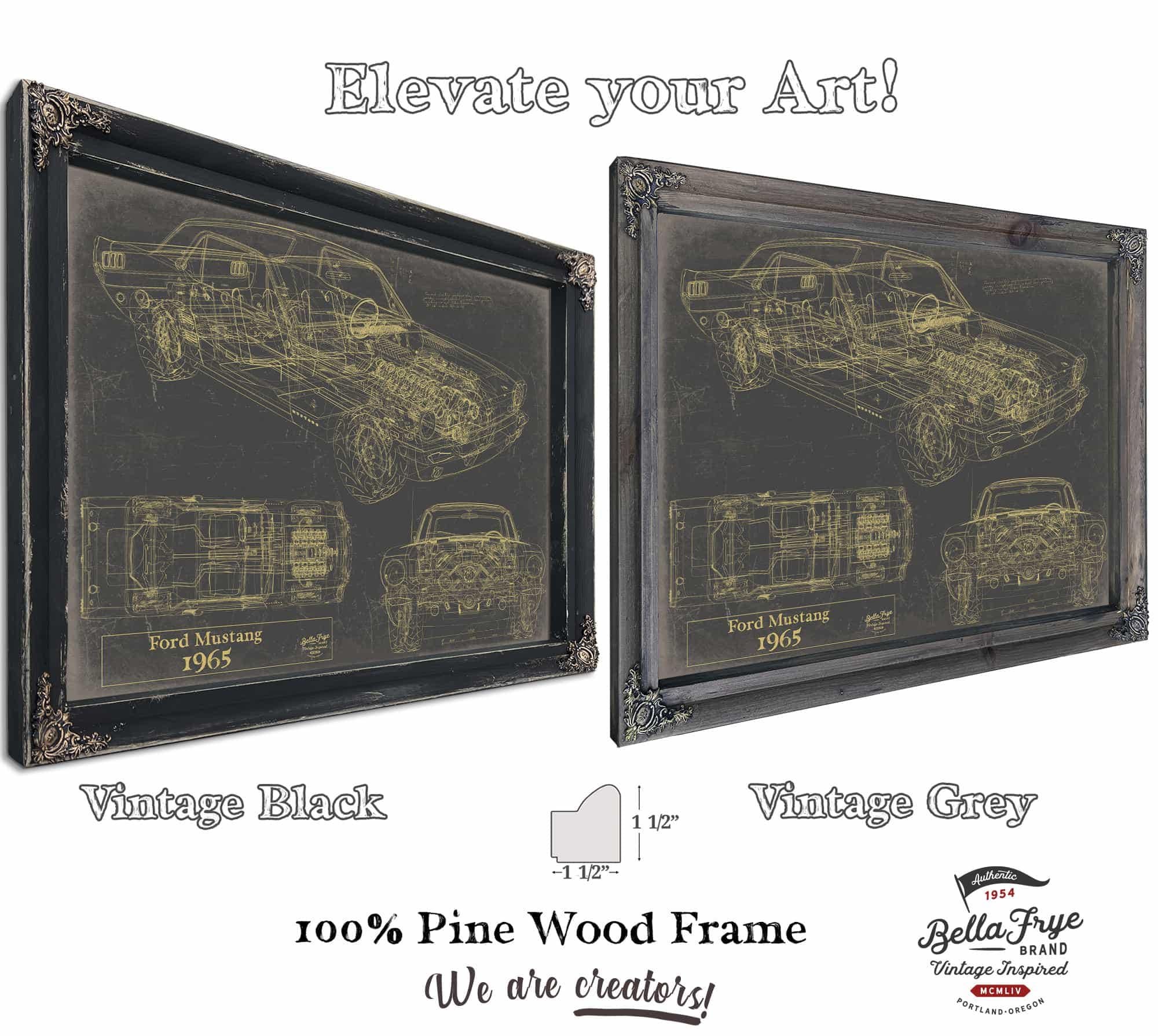 • Bella Frye Vintage 1965 Ford Mustang Car Model Print,  Original Blueprint Canvas