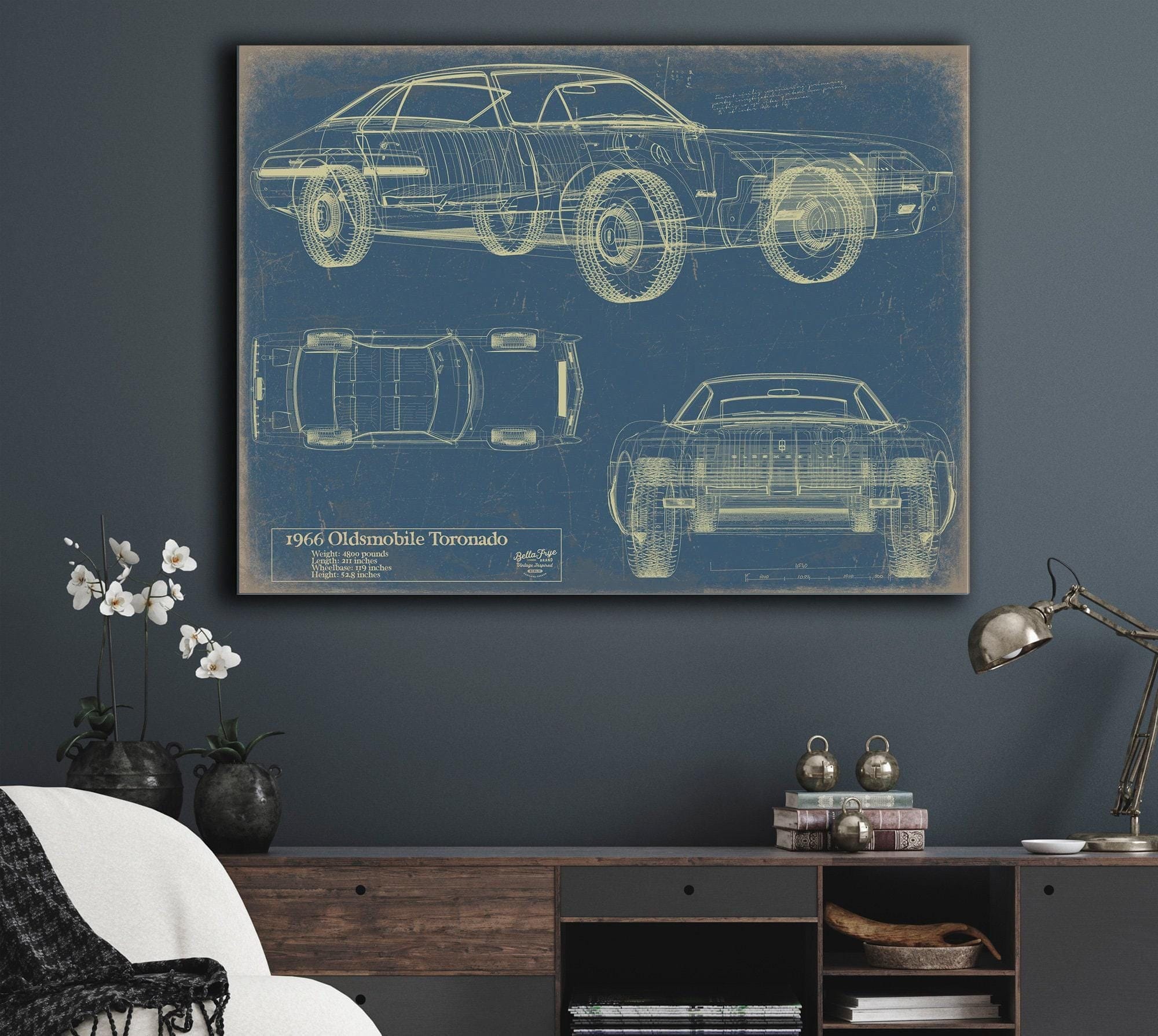 Vintage 1966 Coupe Car Model Print, Original Blueprint Canvas, Framed, or Unframed Art